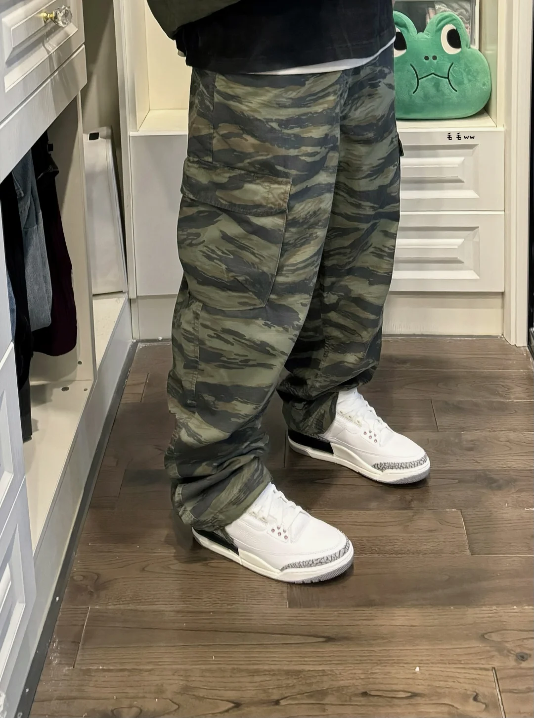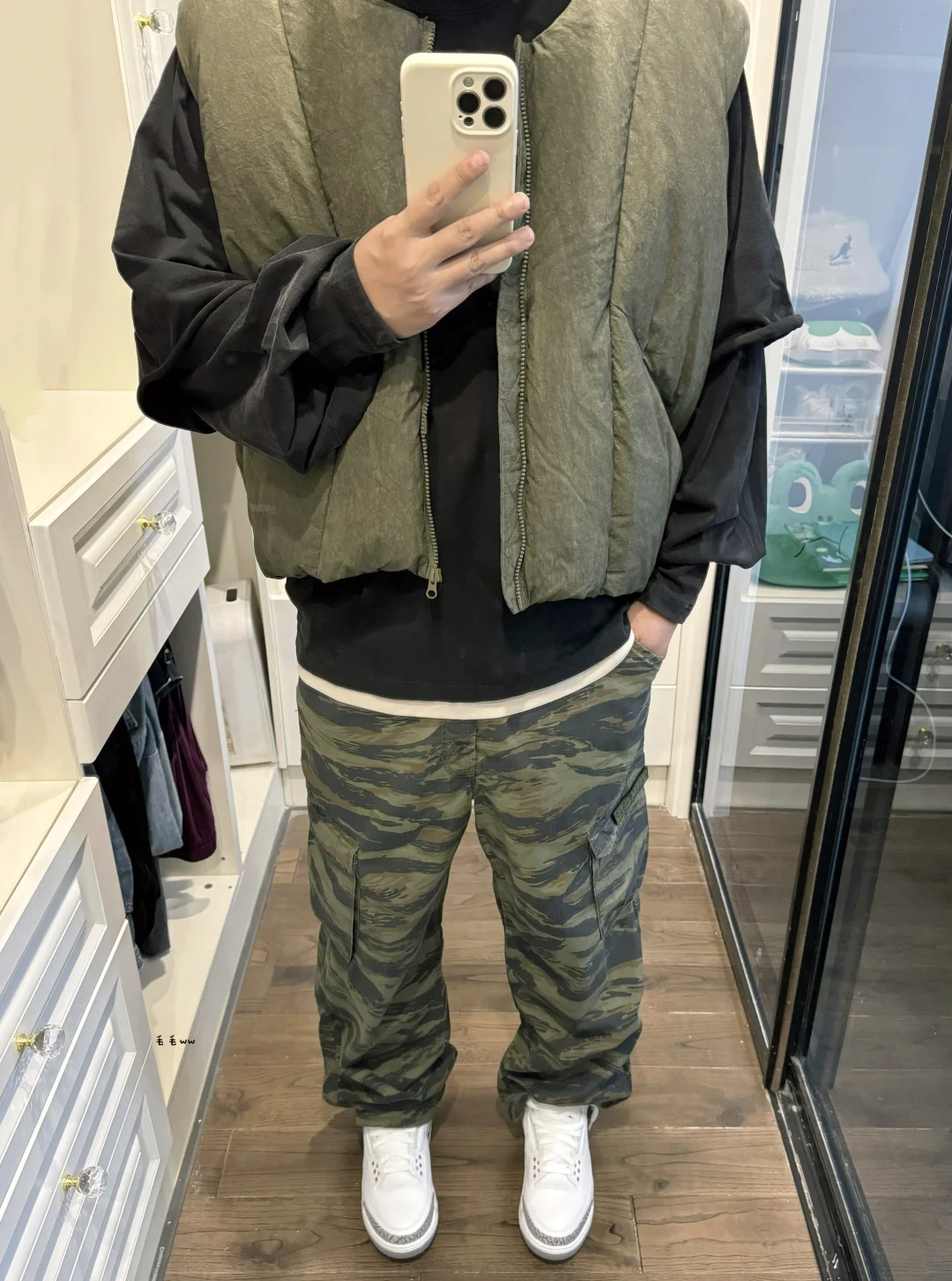 -预热冬季穿搭,羽绒马甲又可以拿出来了;军绿色跟工装风真是对好cp,搭配就非常默契,秋冬需要迷彩细节,再踩一双喜欢的球鞋完美出门 . —————— . 🎽Expensive Taste // M . 👖GAP x Palace // 34 . 👟Air Jordan 3 / white cement // 42.5 . —————— . ✏️本人178cm75kg 球鞋尺码265mm(正常EU42) . 💭以上均为我个人观点,不喜勿喷,欢迎讨论