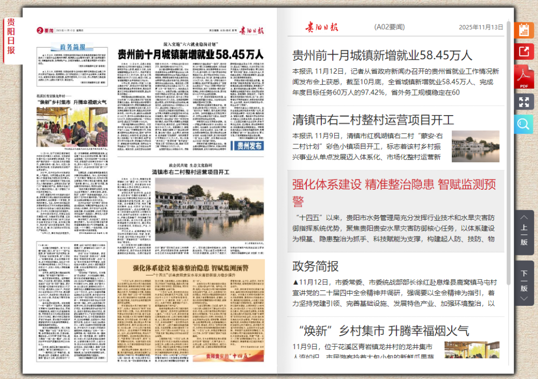 通过健全责任链条、整合技术力量、强化督导检查,贵阳贵安破解了以往防御工作碎片化、责任模糊的难题,让每一座水库、每一处险点都有专人管、专人防,每一项处置都有预案、有技术支撑,为隐患整治、应急处置等各项工作筑牢了制度根基,确保水旱灾害防御工作环环相扣、层层落地,更好实现全域覆盖、全域可控。