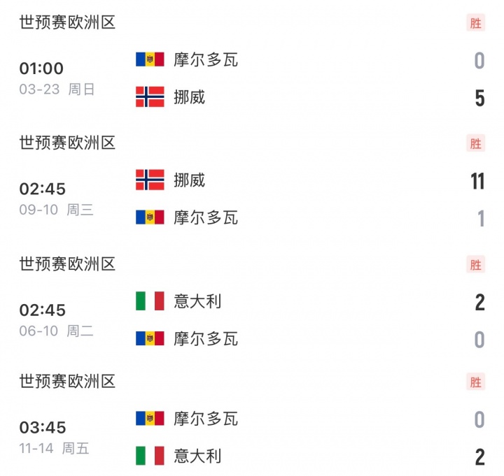 此外,在双方首回合交手中,挪威主场3-0完胜意大利,净胜球方面又拉开6球差距。