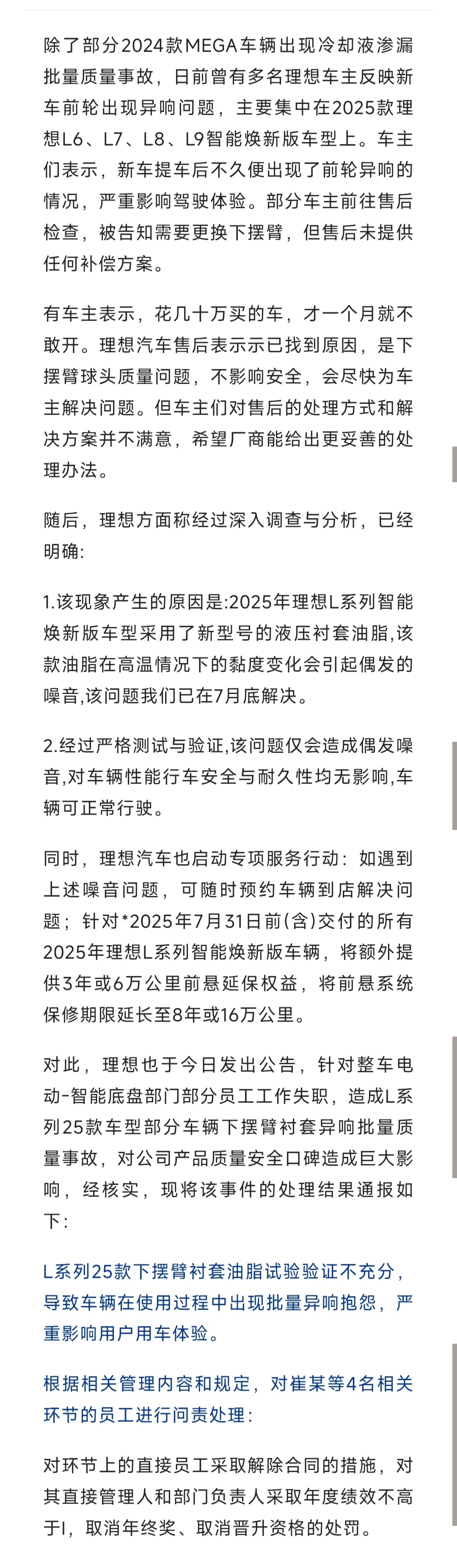 前段时间理想mega的事故,问责处理了18个人。有错就认,认了就改。安全第一位,