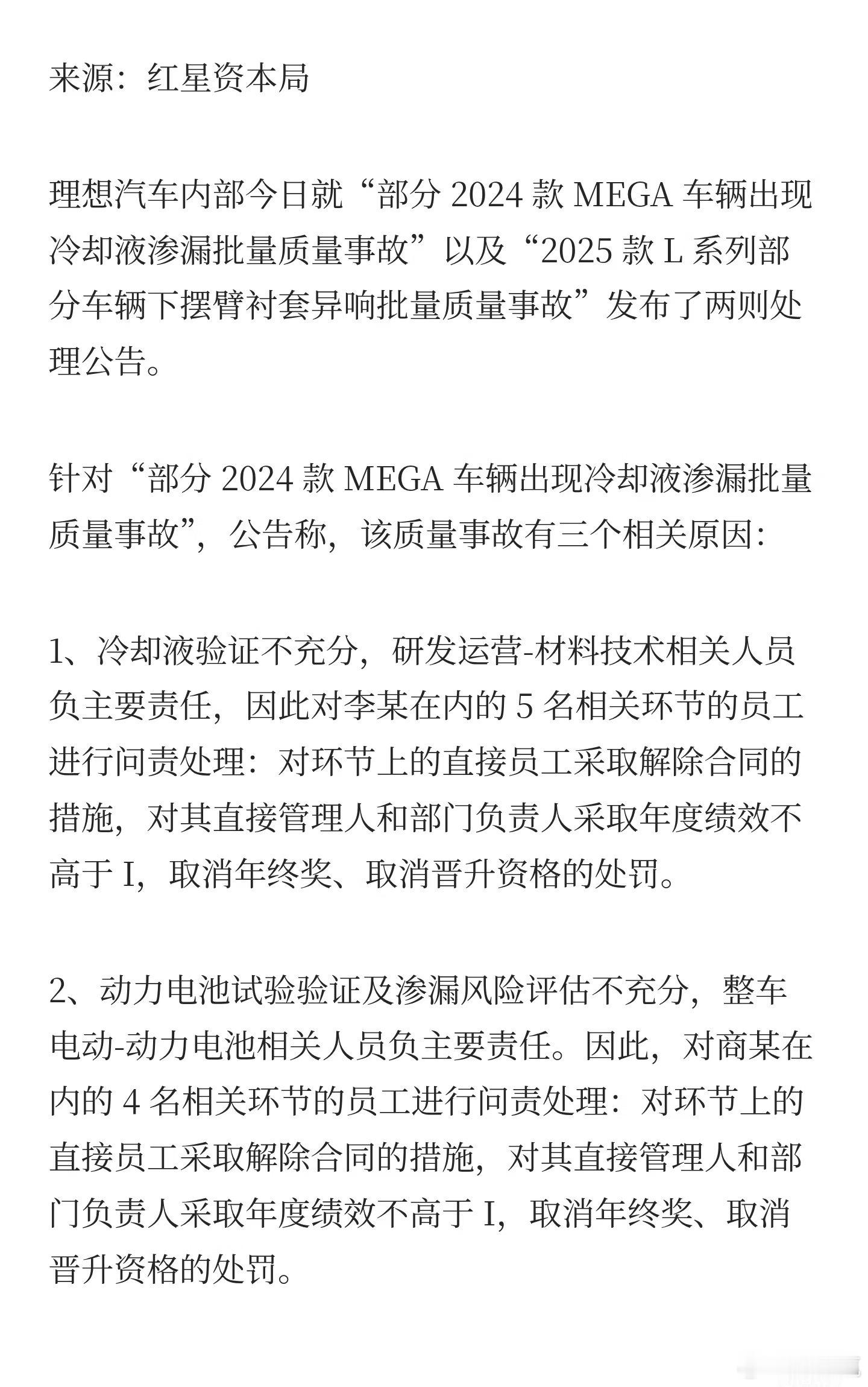 我认为理想问责18人后,更该想“如何让员工不犯错”。理想这次对MEGA起火、L系