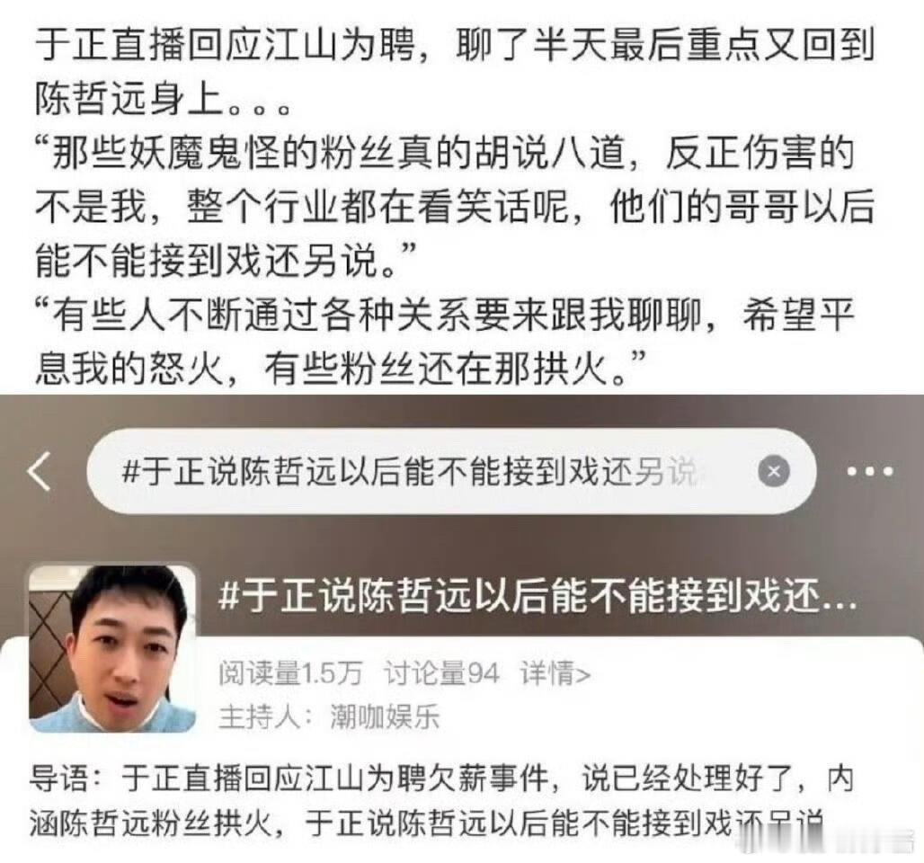 于正开炮撕疯了!内涵陈哲远接不到戏,还骂粉丝拱火,行业都看乐了谁能想到一部
