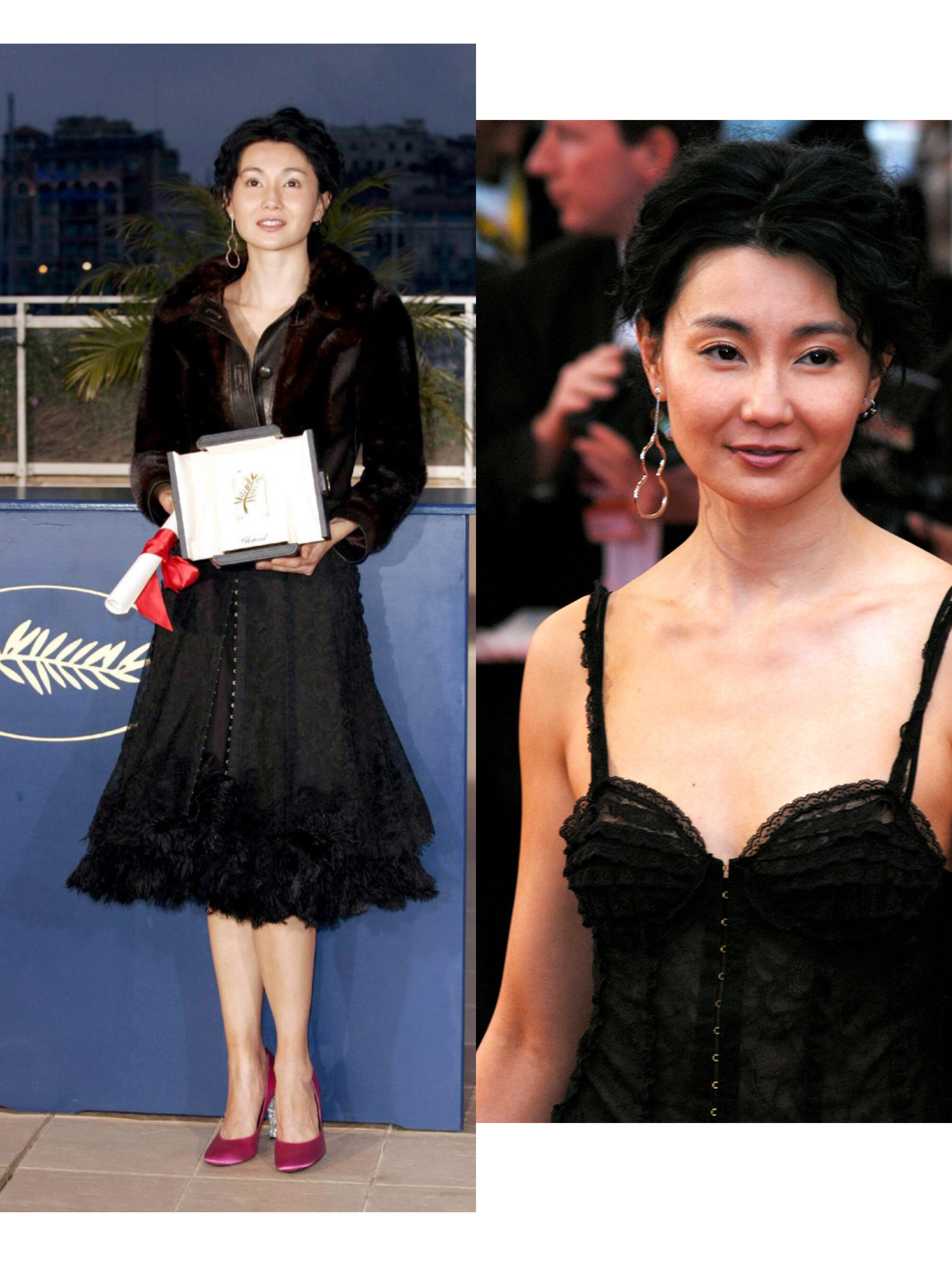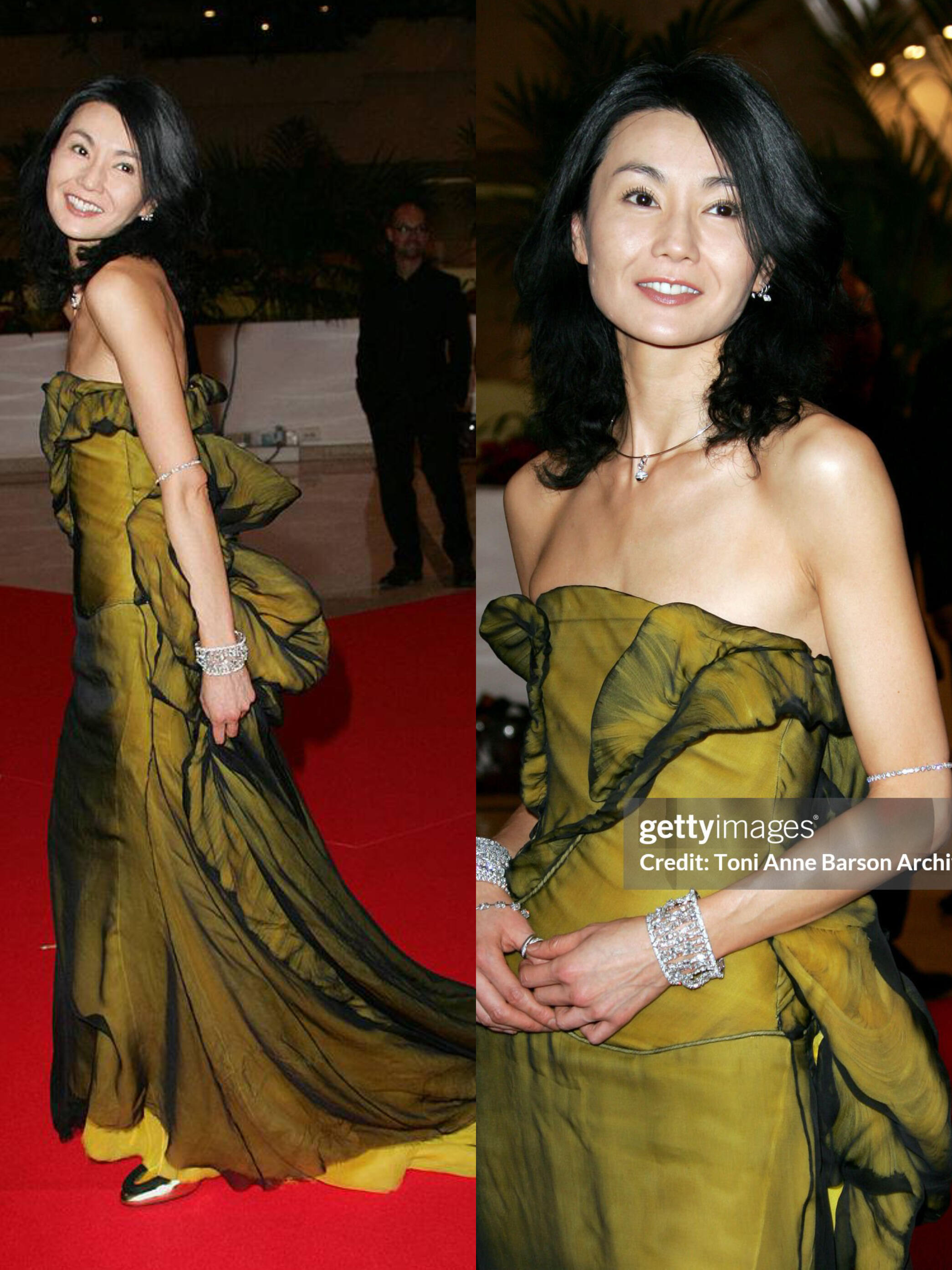 张曼玉一直是松弛感的代名词,千禧年她经常穿着舒适自在的牛仔裤、背心出现在镜头前。说起红毯,反差、破格是她的关键词。