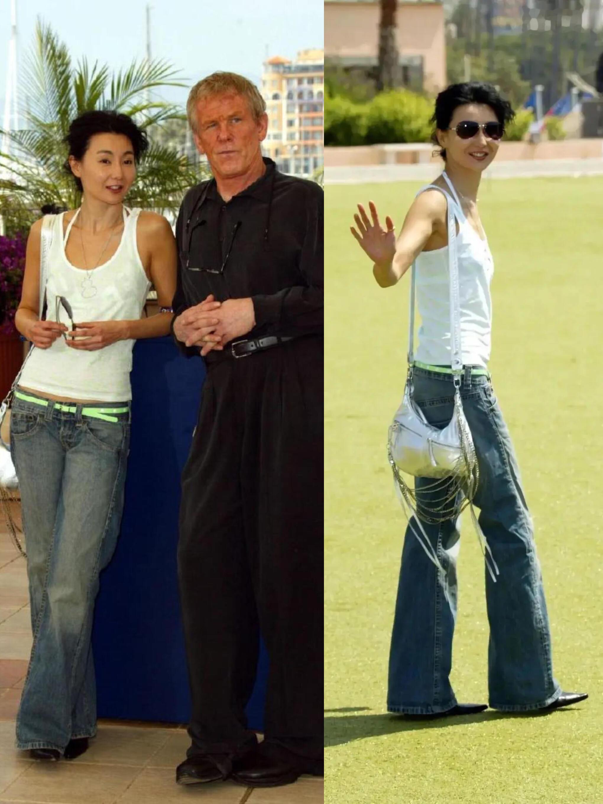 张曼玉一直是松弛感的代名词,千禧年她经常穿着舒适自在的牛仔裤、背心出现在镜头前。