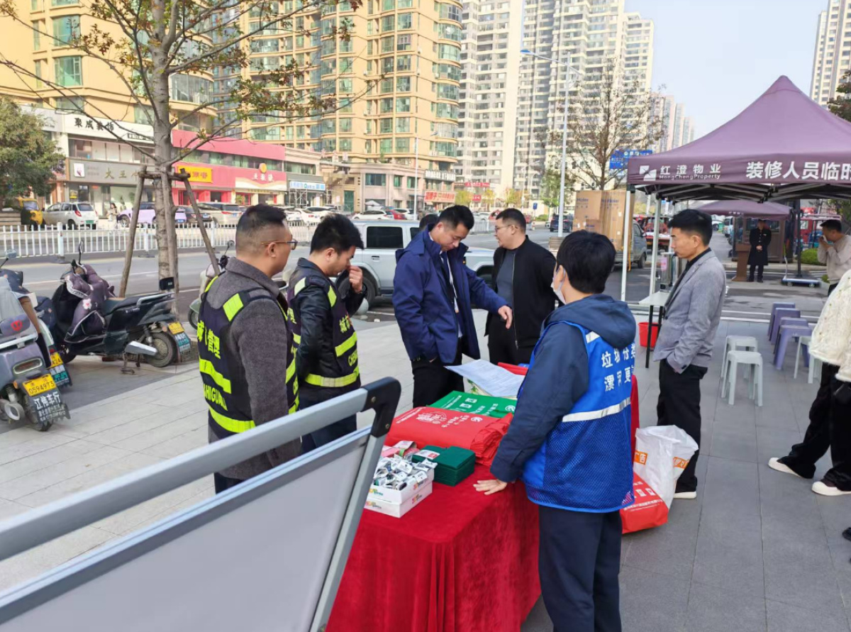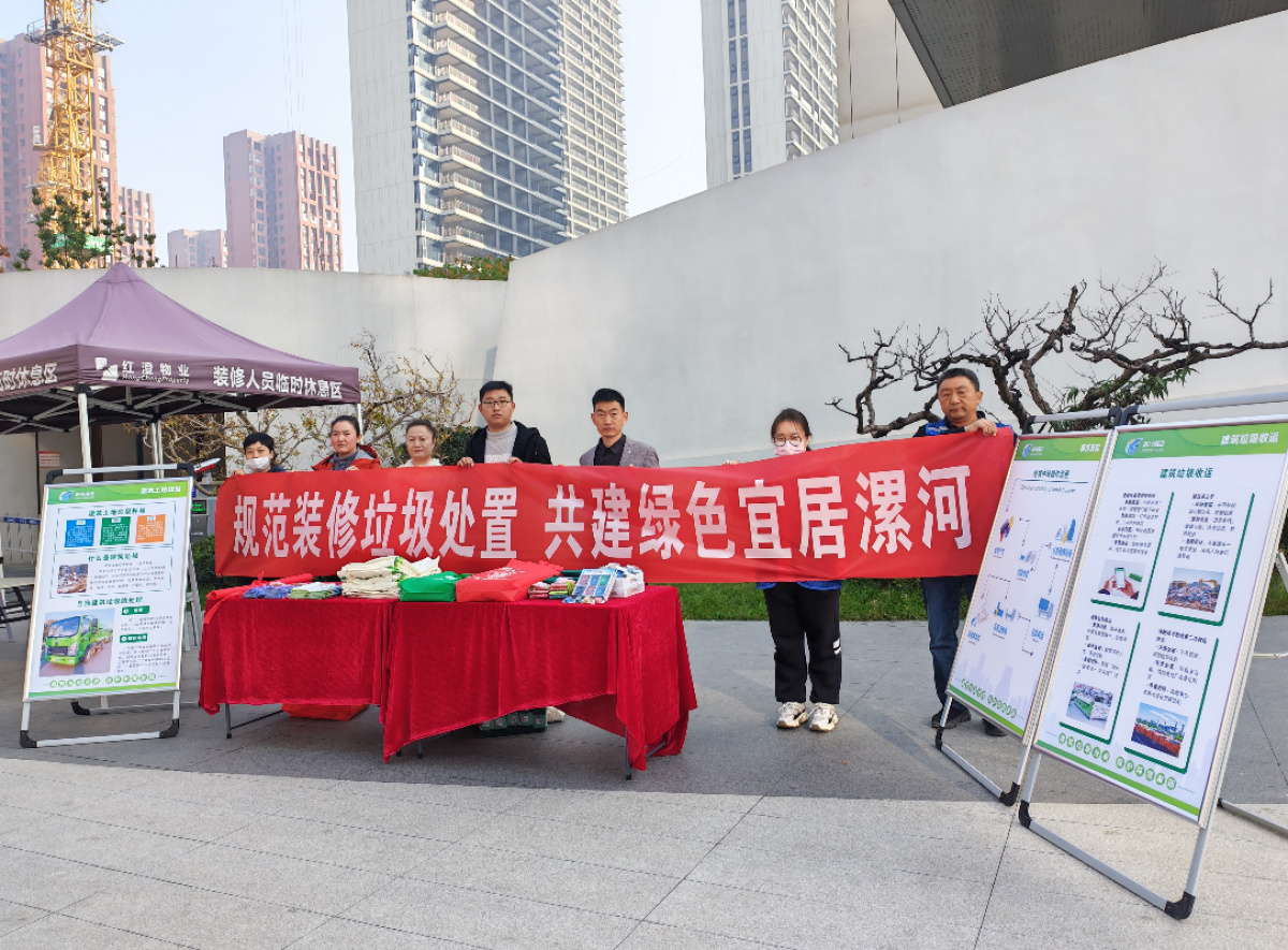 为深入推进装修垃圾规范管理,提升居民环保意识,营造整洁、安全的社区环境,11月14日,漯河市城管局举办了以“规范装修垃圾处置,共建绿色宜居漯河”为主题的宣传活动。活动由漯河市城管局主办,市住建局、市渣土办、郾城区住建局协办,吸引了众多居民、物业代表及清运企业人员积极参与。