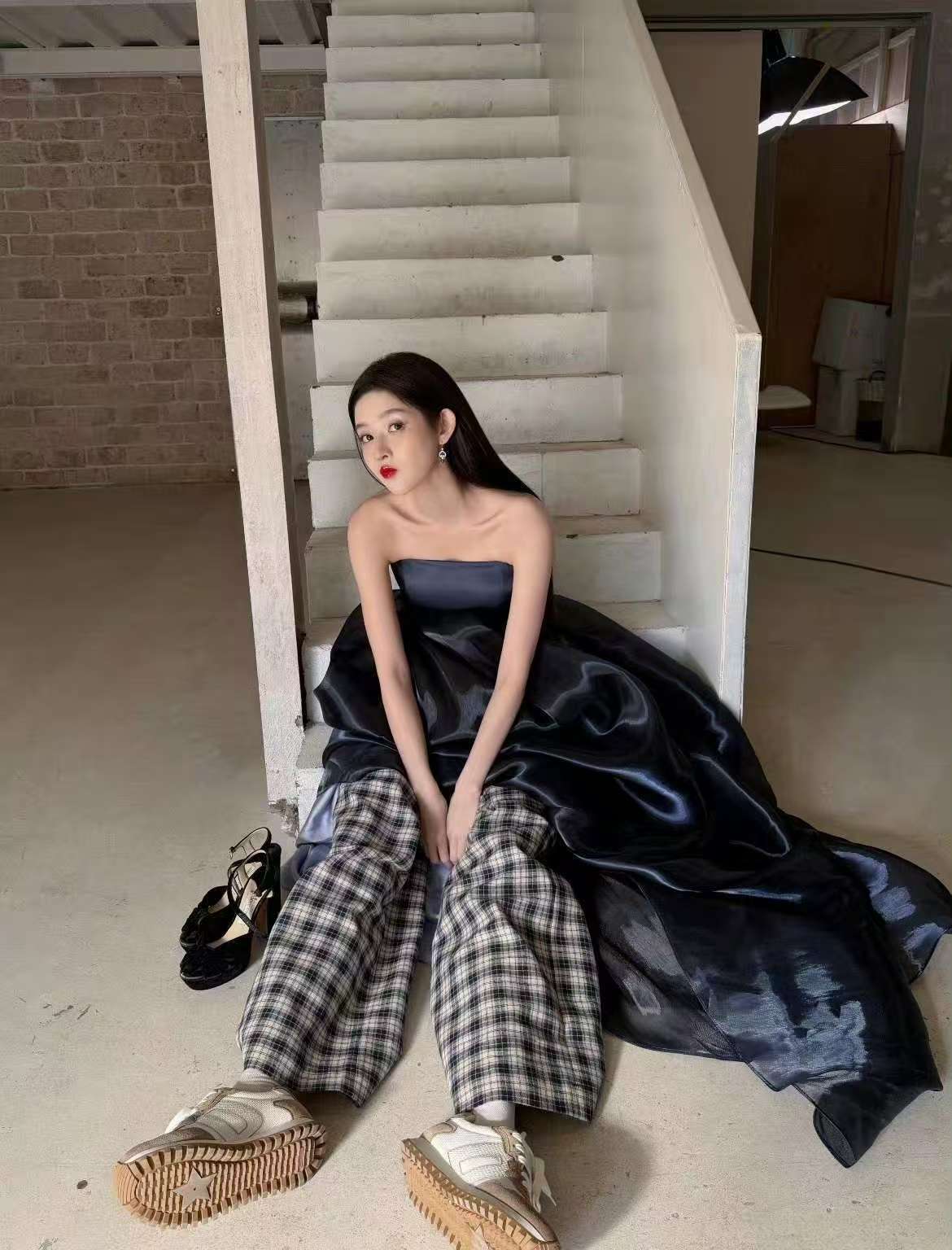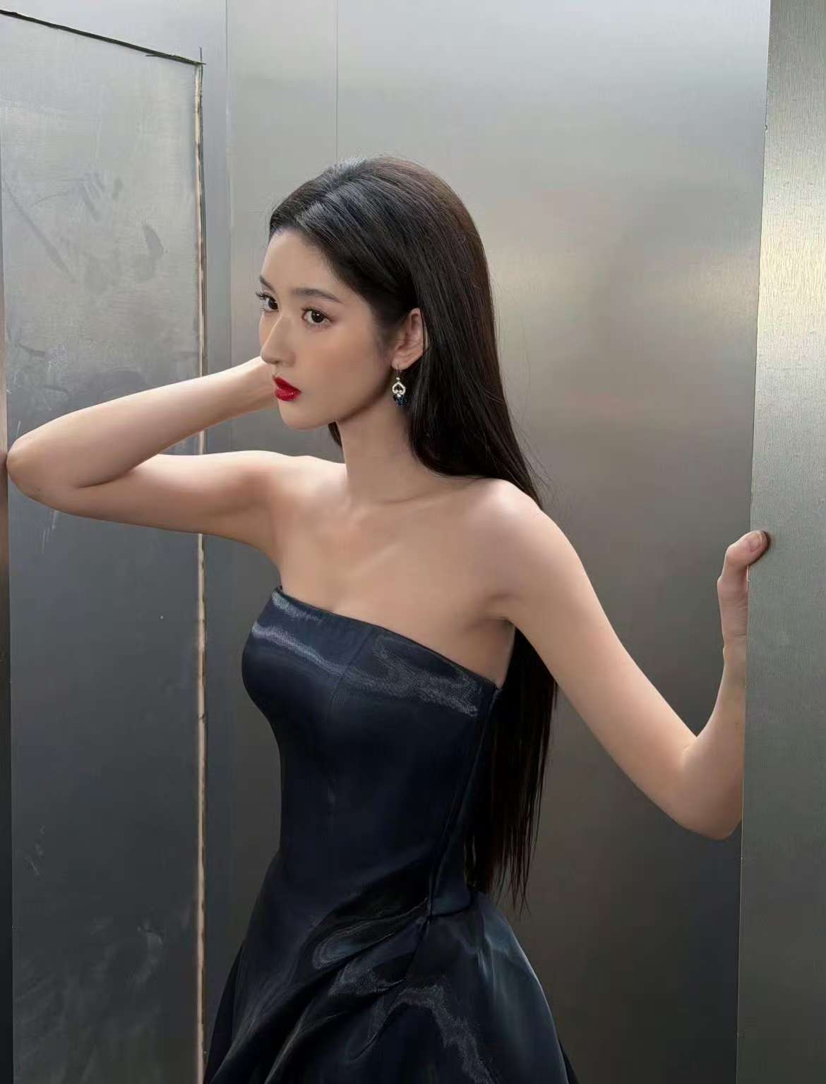 王玉雯金鸡奖出发图美绝!深蓝色抹胸长裙波光粼粼,海的女儿即视感拉满,高个子穿长裙