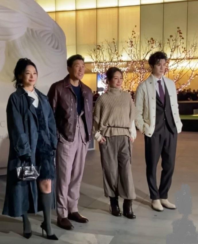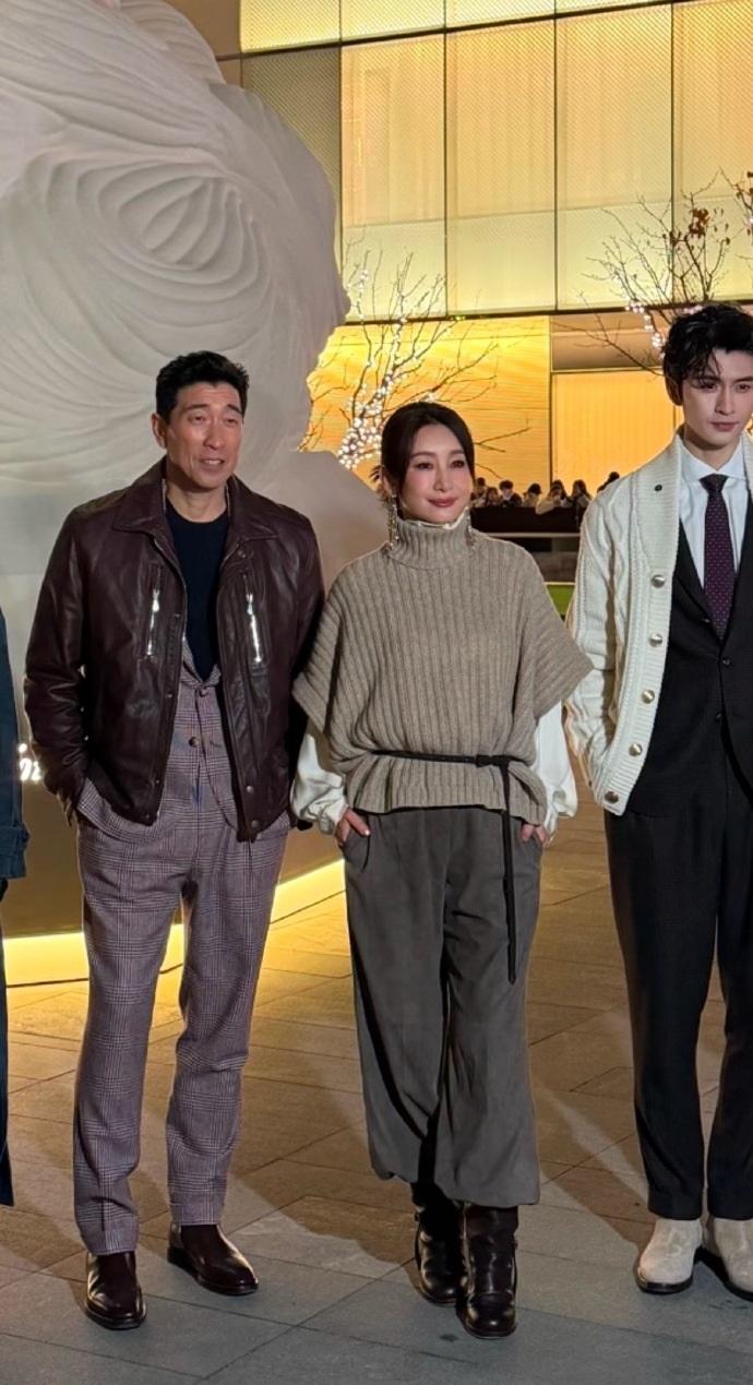 最近秦海璐和王千源一起出席时尚活动,两位站在一起还有点般配,也都搭配的很潮流。 秦海璐上身穿高领毛衣,下身搭配灰色裙子,腰间系着黑色的绳子,特意拉高了腰线,展现出了完美的身材比例。 她脚踩黑色靴子,还挽着漂亮的秀发,戴着金色的耳坠,尽显高贵风情。 秦海璐画着精致的妆容,美如少女,她确实是个不老女神啊。 王千源里面穿格纹西装,脚踩黑色亮皮皮鞋,看上去有种酷酷的感觉。 他外面穿着标志性的皮夹克,留着超酷的发型,像个潇洒不羁的机车男。