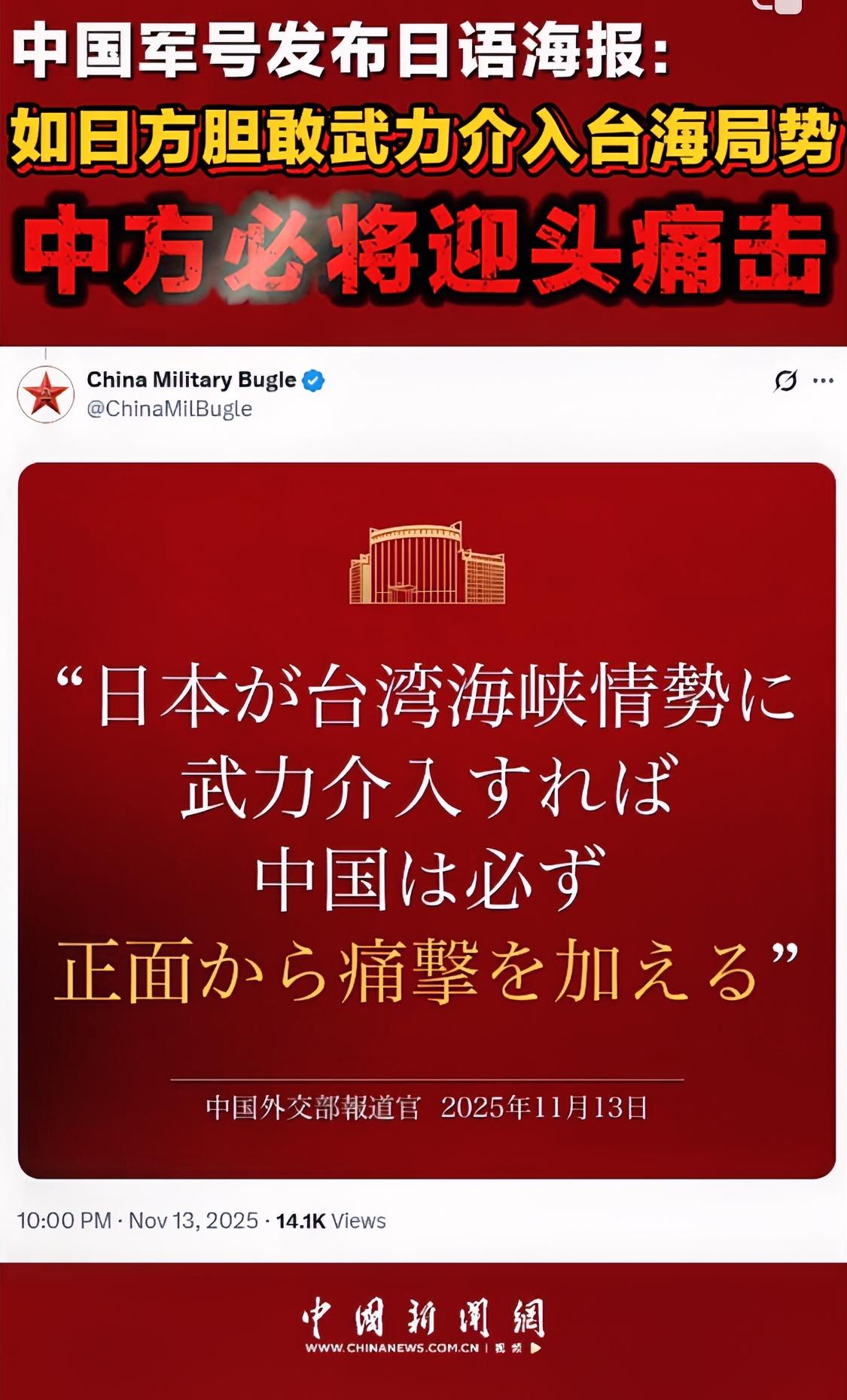 央视和军方官媒也不藏着掖着了,除了义正言辞的表示“若日方胆敢武力介入台海局势,中