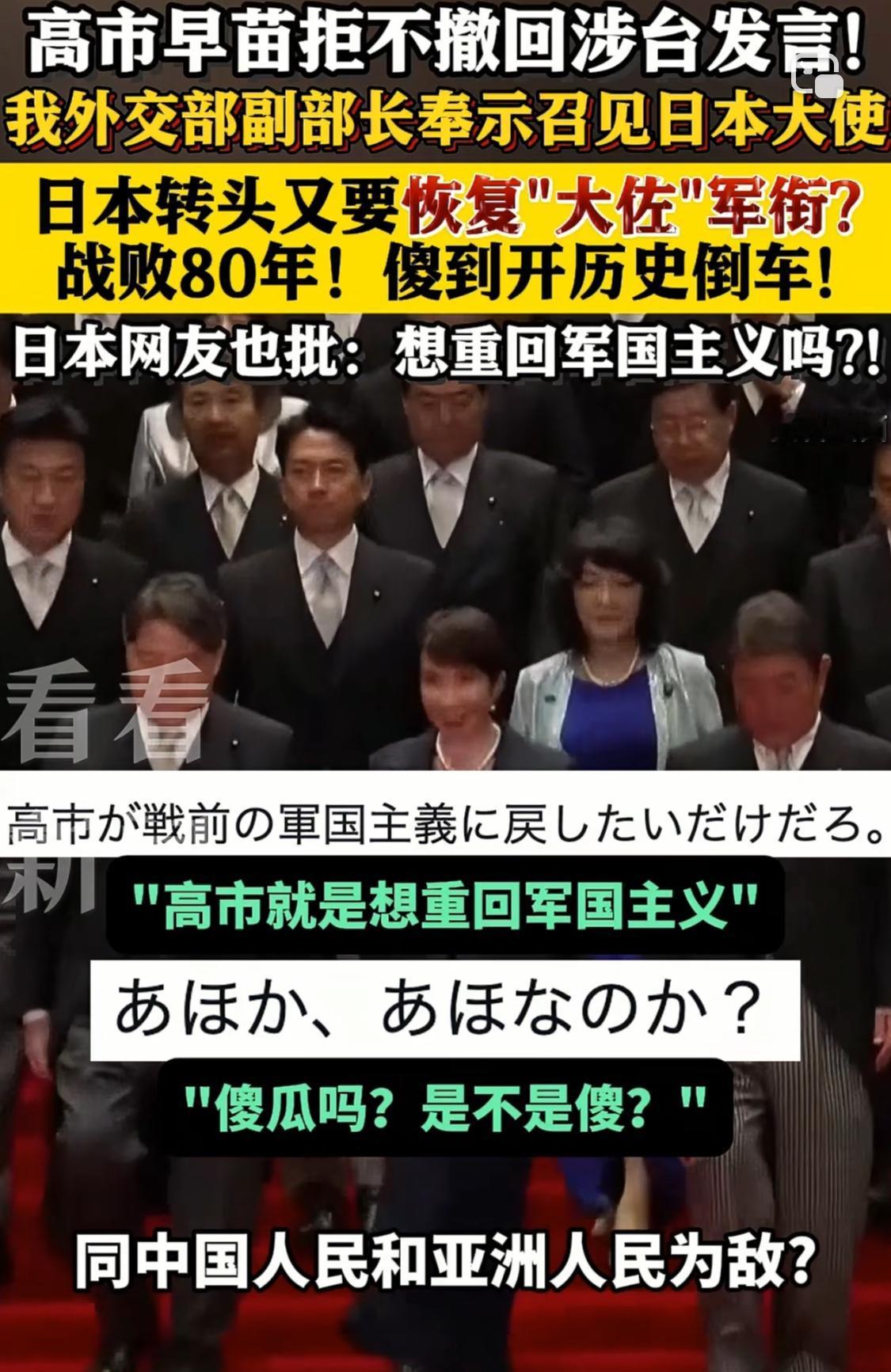 央视和军方官媒也不藏着掖着了,除了义正言辞的表示“若日方胆敢武力介入台海局势,中方必将迎头痛击”。甚至直接发布了一个标注“演示”的视频画面,画面显示一面类似日本国旗的靶子被一枚炮弹精准命中,瞬间变成一堆粉末。 这是一种警告,更是一种强硬的政治表态。既然高市早苗如此嚣张,不光不撤回相关涉台言论,还要恢复"大佐"等旧军衔,以图突破"专守防卫",表现的如此好战,那就来试试吧。 只知道高小姐是个右翼分子,却不知如此迫不及待,才上台没两天就如此嚣张。正好,我们憋了这么久的血海深仇,终于要找到合适理由了!