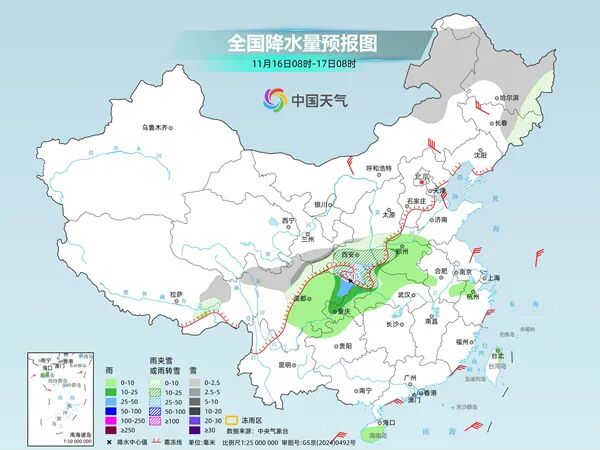 寒潮蓝色预警:受寒潮影响,预计,11月15日至17日,我国北方及中东部地区将自西向东、自北向南先后出现大幅度降温,日平均或最低气温普遍下降6~10℃,内蒙古中西部、辽宁东部、吉林东部、黑龙江南部和北部、陕西南部、重庆北部、河南西部、湖北西部等地下降12~14℃,局地降温可超过14℃。11月18日前后,最低温度0℃线将南压到苏皖南部至湖北北部一带。