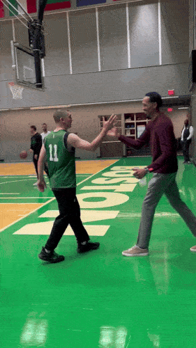 “佩顿-普里查德与三冠成员肖恩-利文斯顿打招呼,后者今天观看了凯尔特人的训练。”JustinTurpin附文道。