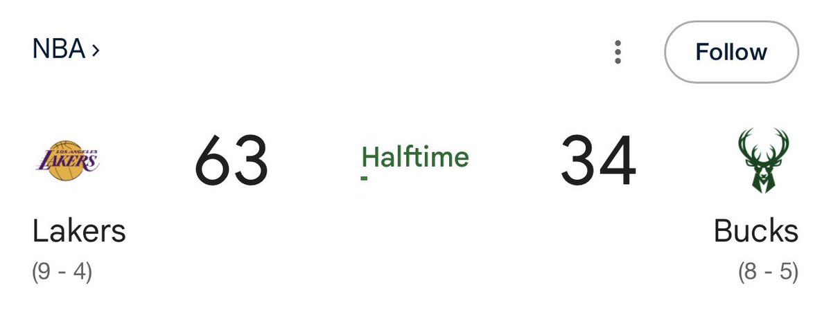自媒体湖人日报报道。湖人在半场结束时正痛击雄鹿队