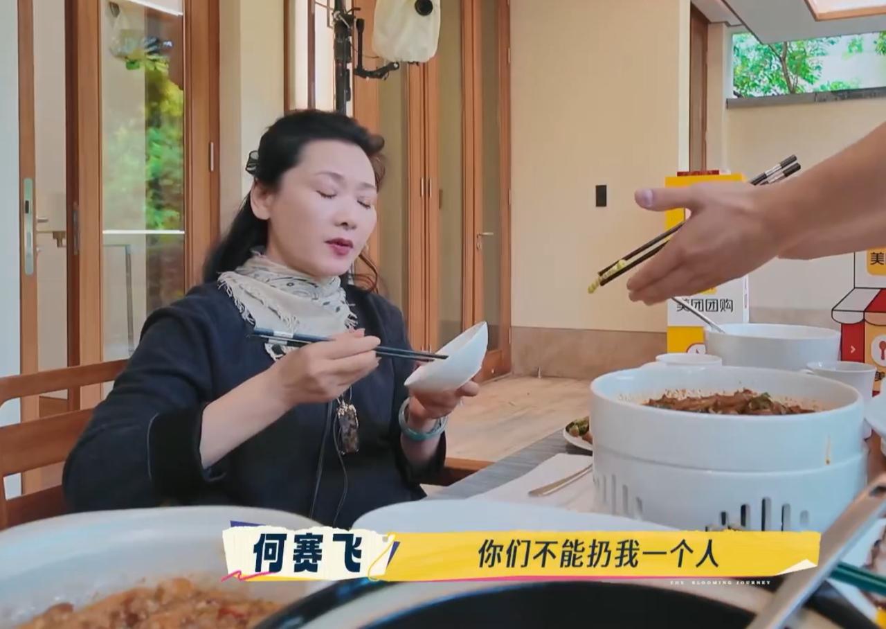 眼看刘晓庆,宁静起身离开, 何赛飞可怜巴巴留在原地, 刘嘉玲大声宣告 留下来。 节目里, 何赛飞和刘嘉玲吵得面红耳赤, 各种不服, 各种“剑拔弩张”。 就这样, 网友们就觉得她们两个人, 一定对彼此有很大的意见。 就喜欢动不动就吵起来。 直到看到这一幕, 网友才知道自己错了。 贵州民宿用餐完毕, 宁静和刘晓庆起身离开, 约好去游泳。 何赛飞还没有吃完, 不想去游泳, 请求不要丢下她一个人。 这时神奇的一幕发生了, 刘嘉玲第一个大声说, 自己会留下来陪她。 由此可见, 刘嘉玲和何赛飞的关系 没有想象中差呀。 也许有些网友会说, 也许刘嘉玲刚好不想去游泳呢。 你想呀, 如果你讨厌一个人, 想要远离他, 可以有一千万种理由。 你说刘嘉玲能想不到一个理由离开吗? 那么答案只有一个, 那就是何赛飞,刘嘉玲“不打不相识”, 深知彼此都是很有主见的人, 都是有话直说的人, 不会记恨彼此。 她们都是“敞亮”的人。 那些觉得她们关系恶劣的网友 这下可搞明白了吧。