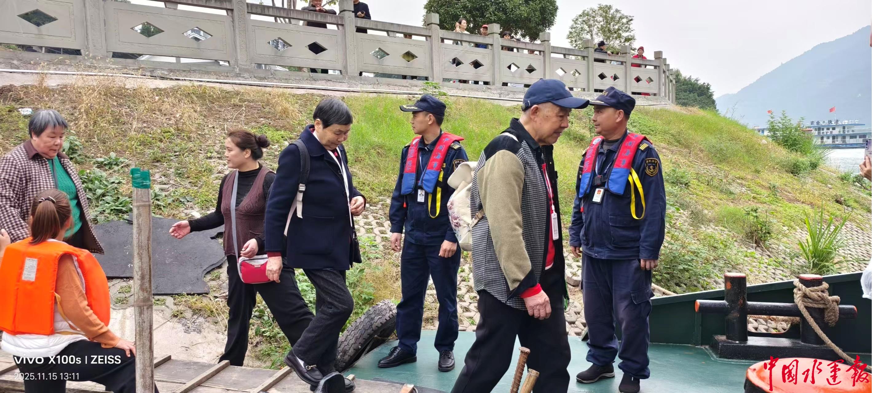 当日8时50分,“永发32号”开航后,云阳处采取现场跟船保障举措:由处长带队登船全程值守,在旅客上下船环节维护现场秩序,航行过程中紧盯船舶操作规范,对发现的细节问题及时纠正,确保船舶行进过程中旅客安全、船行顺畅,为百人次旅游团的水上行程提供贴身安全守护。