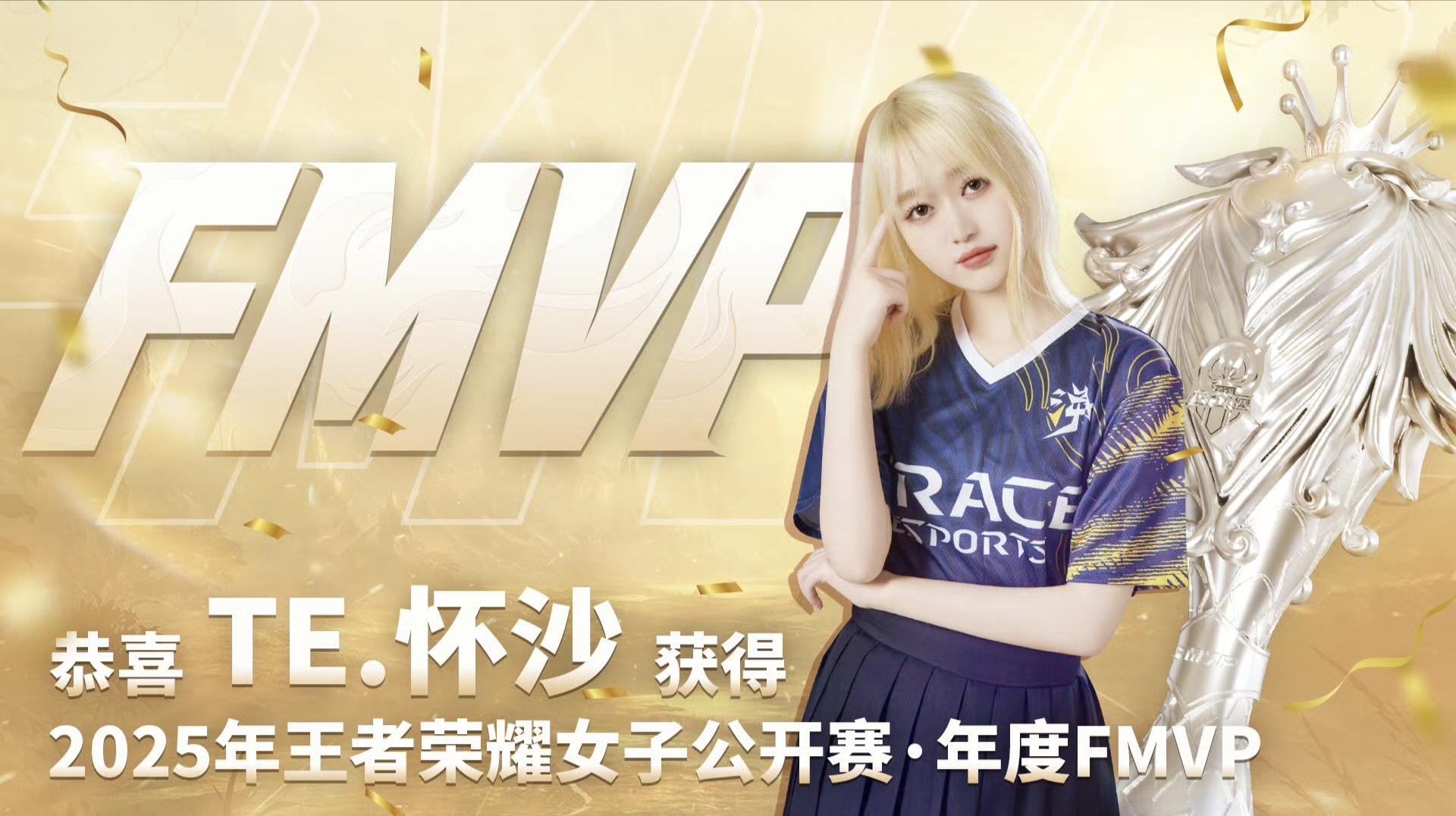 虎扑11月16日讯恭喜TE.怀沙获得2025年王者荣耀女子公开赛年度FMVP!