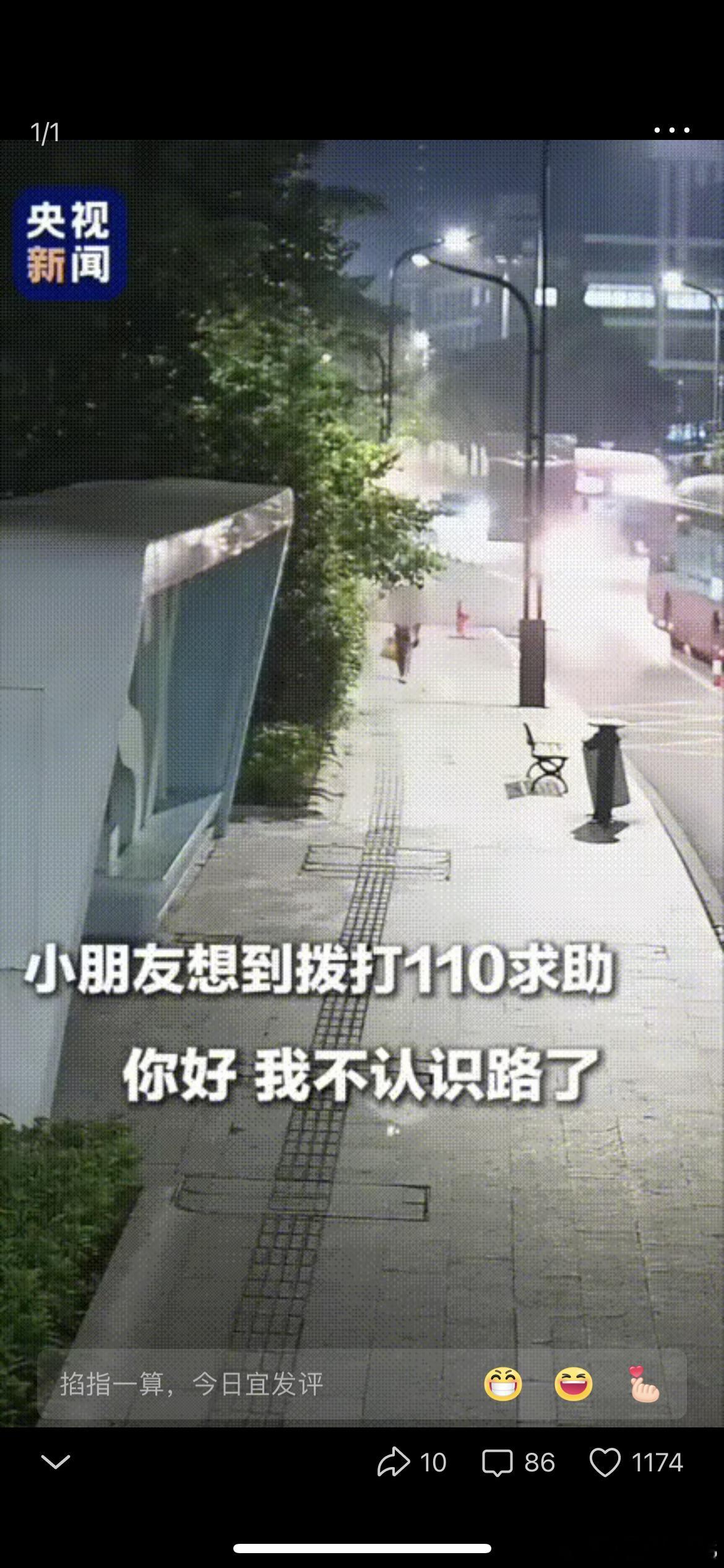 这孩子火到央视新闻了!广东珠海,一小女孩乘坐公交车不知自己下错了站,独自在站台从午后一直等到天黑,女孩看着慢慢暗下去的天空才想到可以拨打110求助。女孩冷静的和民警表示:“你好,我不认识路了,我想坐41路车,但是没有坐到。”接线民警温柔的询问女孩:“那你要不要警察过去帮你呀?”女孩表示:“那就来一下吧。”没一会铁骑就赶到了女孩所在的站台,一边安抚女孩情绪一边电话联系家长。随后民警将女孩带回了所里并贴心的为女孩准备了饭菜。随后家长赶到派出所接走了小女孩。网友评论:事实证明,没有人贩子小孩子根本就不会丢!看到警灯闪烁瞬间就落泪了。还有网友评论:有些孩子遇到危险时,要么吓得说不出话,要么不知道该向谁求助,这孩子的冷静求助真是太关键了!突然觉得教会孩子正确的求助方式,比什么都重要!愿每个孩子都能像这个小男孩一样,遇到困难时,心里有“找警察”的底气;愿每个求助的声音,都能被温柔回应。
