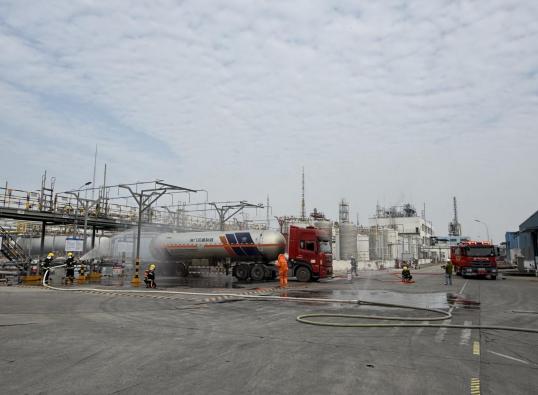 荆州新闻网消息:液氨卸车作业时,输送管道接口意外脱落,怎么办?11月14日下午,荆州经开区化工园区举行液氨泄漏应急救援演练暨应急技能比武活动。