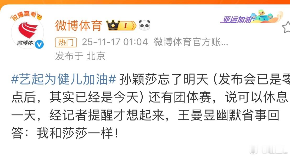 来跟我读:“轮休”凌晨一两点还在接受采访,今天还要接着上场?但凡吃点五谷杂粮都不能想出这个词条。怎么了是孙颖莎卫冕两大的冠军🏆奖杯太耀眼了让你们原地变缝纫机了?
