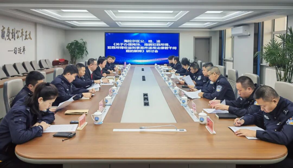 近日,海拉尔区检察院会同海拉尔区法院、呼伦贝尔市公安局海拉尔分局,就《关于掩饰、隐瞒犯罪所得、犯罪所得收益刑事案件适用法律若干问题的解释》召开专题研讨会。