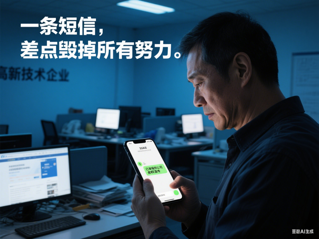 2023年3月的一个深夜,张三盯着手机屏幕上的匿名短信,指尖发凉。短信内容只有一句话:“你公司官网的‘高新技术企业’宣传,我已经举报到区市监局了。”