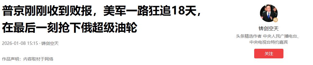 参考来源:普京刚刚收到败报,美军一路狂追18天,在最后一刻抢下俄超级油轮——2026-01-08 15:15·铸剑空天