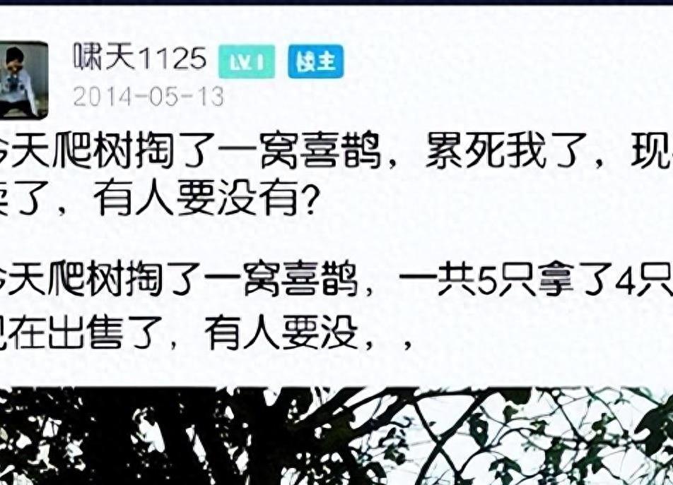 不久儿子就把捕到的小鸟卖掉了,听说一下子卖了一千块钱,他心里还咯噔一下,几只小鸟卖的钱顶他干好几天,心想:“这不会是啥珍贵动物吧?”但很快就释然了,他们这穷乡僻壤的哪有什么值钱的东西。
