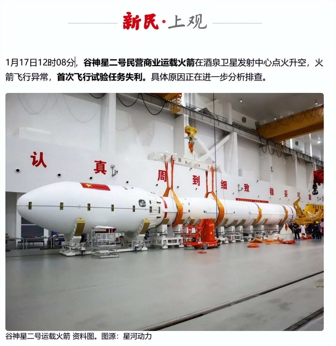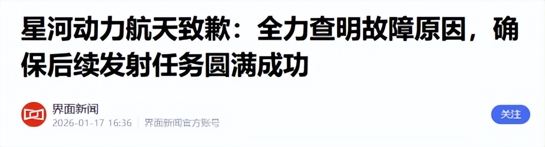 谷神星二号火箭首飞试验失利,星河动力致歉!网友评论出乎意料、令人动容——2026-01-17 18:00——上观新闻