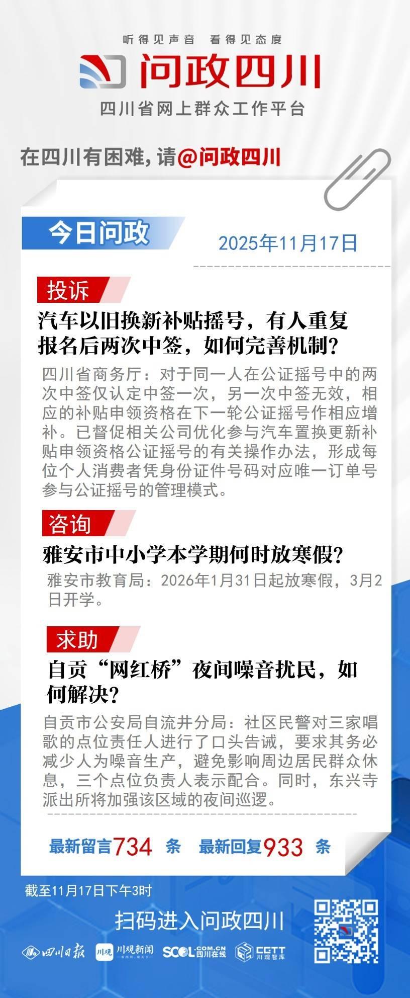问政四川网友提问:请问雅安市中小学这学期寒假放假时间与开学时间是何时?以便提前规划。