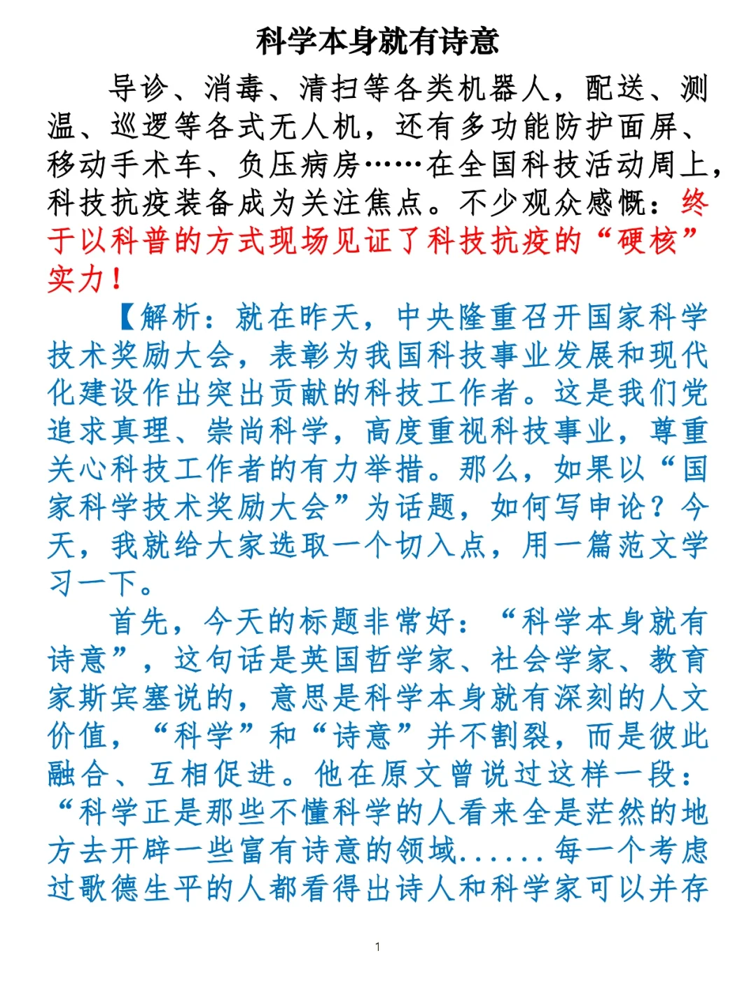 就在昨天,中央隆重召开国家科学技术奖励大会,表彰为我国科技事业发展和现代化建设作出突出贡献的科技工作者。这是我们党追求真理、崇尚科学,高度重视科技事业,尊重关心科技工作者的有力举措。 如果以“国家科学技术奖励大会”或“科学技术”为话题,如何写申论?今天,我就给大家选取一个切入点,用一篇范文学习一下。