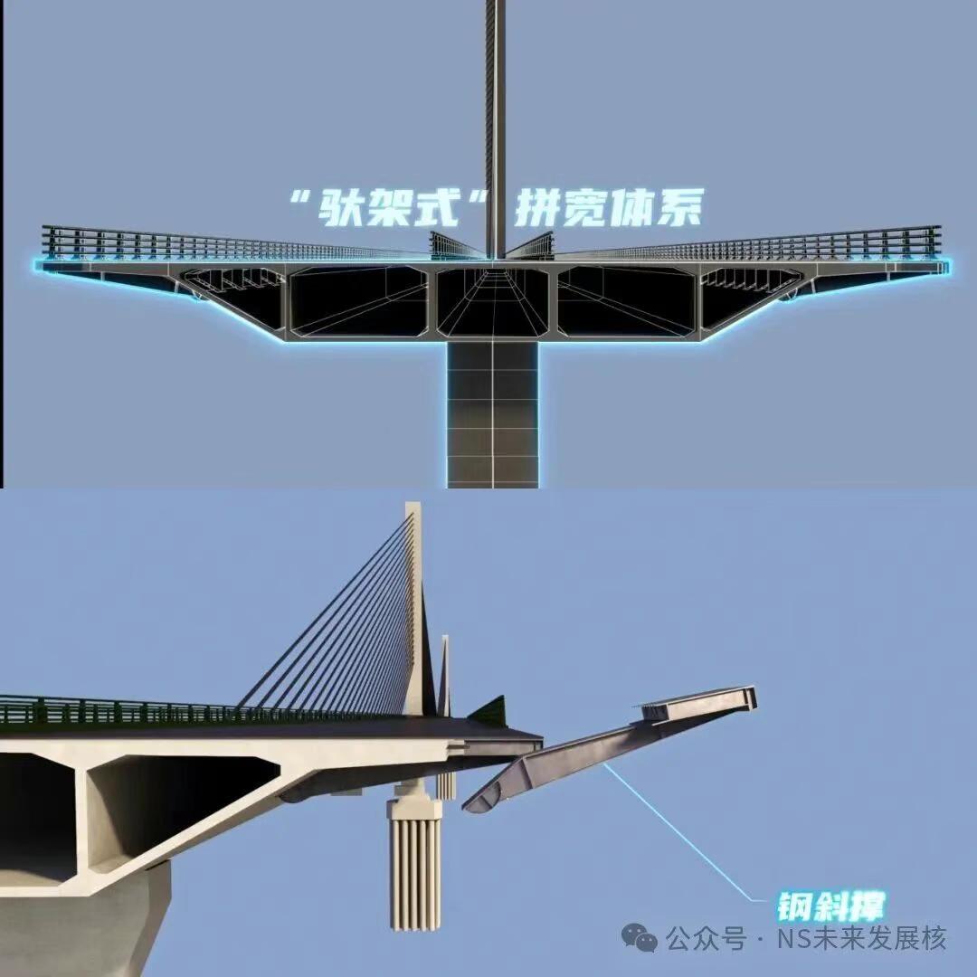 【南中大桥将成为世界首例中央索面大跨径混凝土斜拉桥拼宽!】广中江高速主线南中大桥早前宣布将扩建加宽,目前项目正式开工建设,整个项目预计2027年通车。 根据介绍广中江高速南中大桥两侧采用“驮架式”拼宽技术,各拓宽2.25米,最终实现双向八车道通行,是世界首例中央索面大跨径混凝土斜拉桥拼宽工程。 大家觉得这项技术是不是挺牛的?
