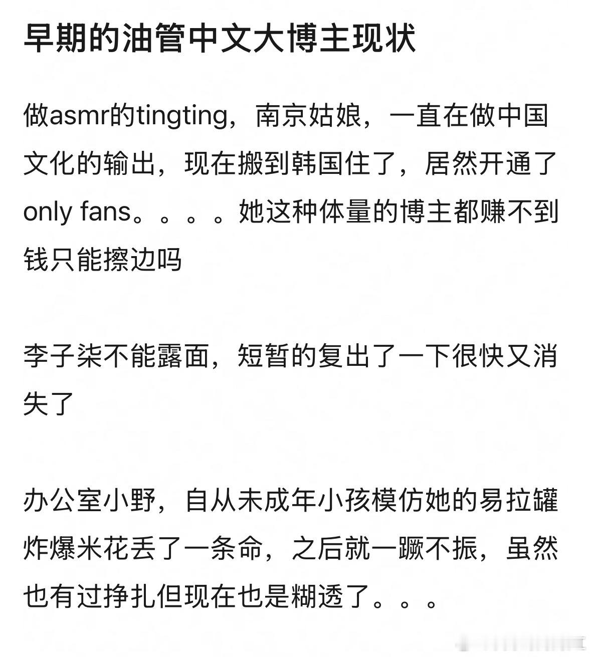 早期的油管中文大博主现状