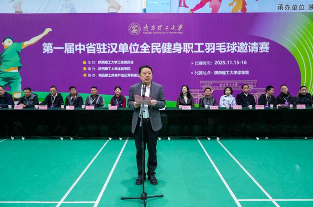 2025年11月15日至16日,由陕西理工大学首倡主办的第一届中省驻汉单位全民健身职工羽毛球邀请赛在南校区体育馆举办。汉中市人大常委会副主任、市总工会主席李晓媛,陕西理工大学党委副书记谯伟,汉中市体育局党组书记汤新军,陕西理工大学党政办及各参赛单位领导出席开幕式。中省驻汉机关单位、中省驻汉企业、金融机构及高等学校等25家单位职工代表队队员及陕西理工大学师生共计330余人参加开幕式。