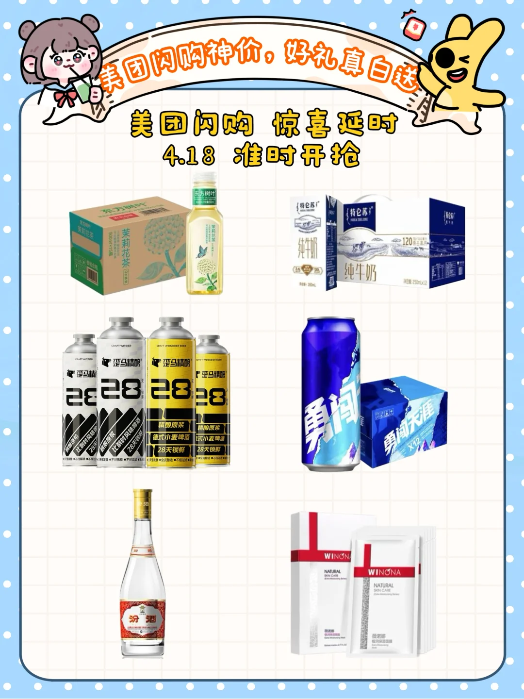 姐妹们!美团闪购的「真白送」活动居然返场了!这次只限4月18日1天,整整10万份神价好礼全补贴!真的白送!错过上次的这次给我冲!!