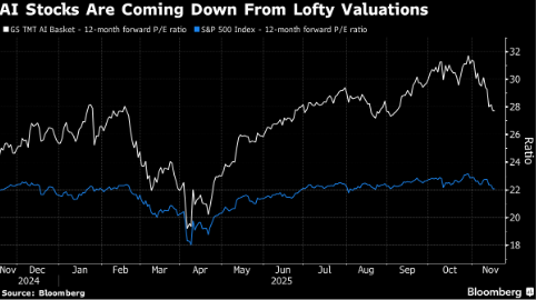 今年MSCIACWI指数已上涨17%,股市已显现疲态,投资者担忧人工智能股票可能存在泡沫。标普500指数目前较10月峰值回落约3%,而掉期市场已下调对美联储12月降息的押注。