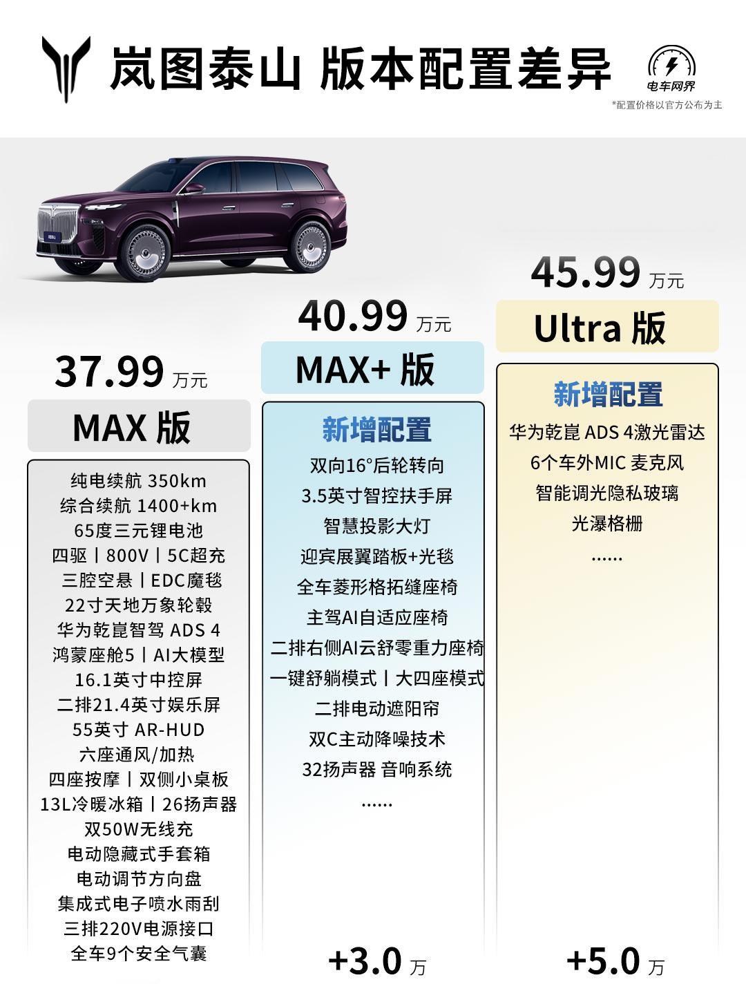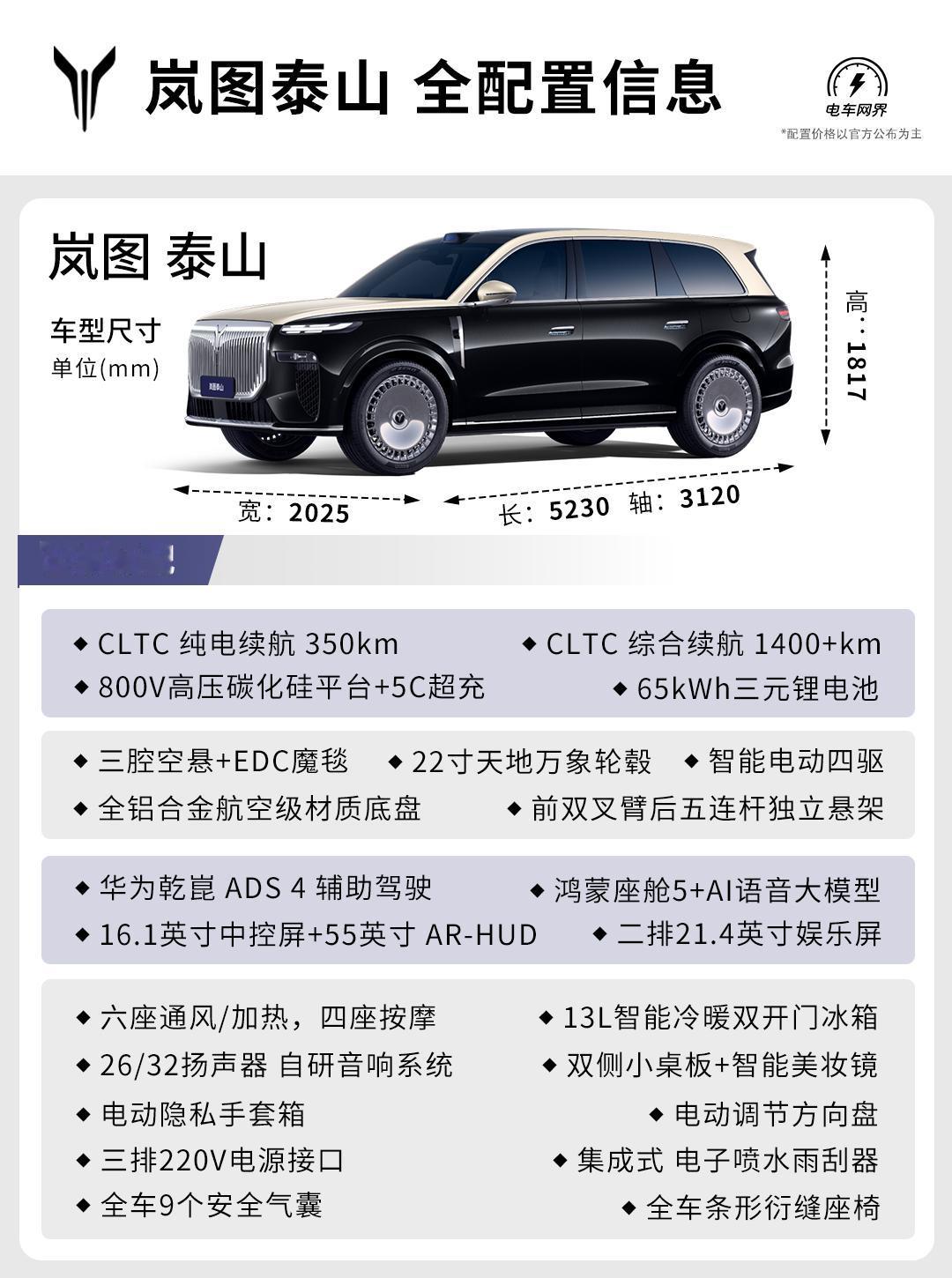岚图大六座旗舰SUV-泰山上市,三个配置版本有什么区别?上市权益有哪些?看完这篇
