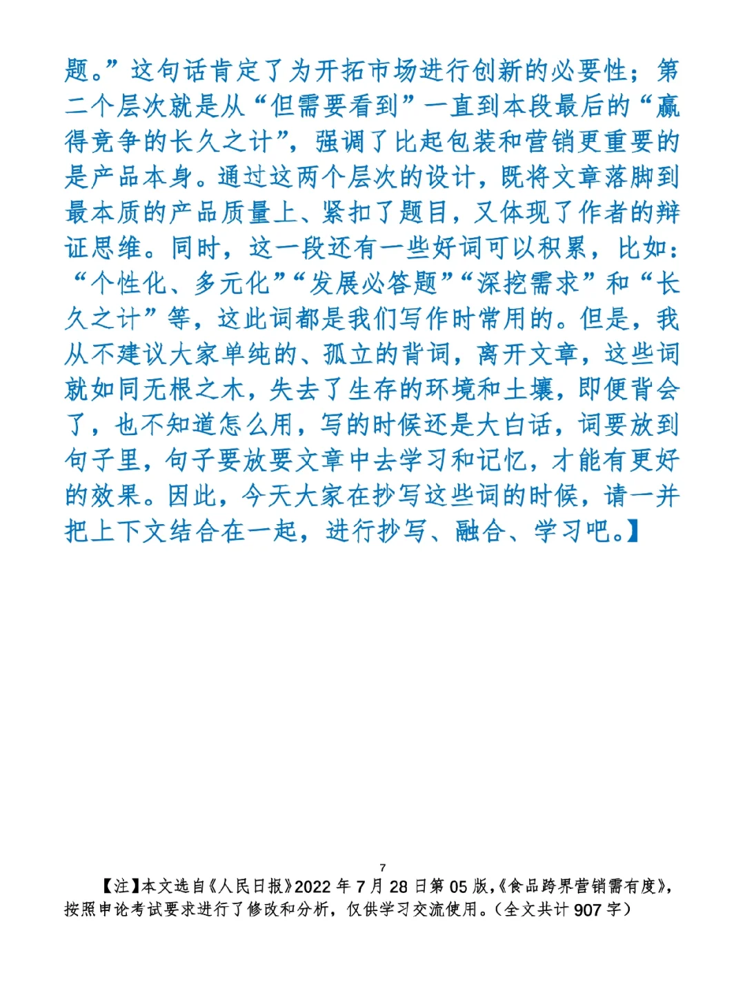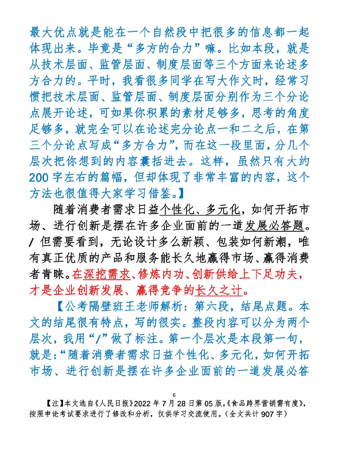 今日打卡作业: 1. 完成填空题 2. 抄写全文红字+划线部分内容 3. 写完后在留言区打卡 ⭐️ ⭐️ ⭐️ ⭐️ ⭐️ ⭐️ 如何抄写:每天的抄写文章以图片形式发在“公考隔壁班王老师”账号,红色字是重点句和结构句,黑色字是正文,蓝色字是解析,大家抄写时不必抄蓝色字。建议先通读全文(包括蓝色解析部分),做到心中有数再开始抄写,效果会更好。 关于文章:抄写文章来源于人民日报,但每篇文章我都根据申论考试要求进行了修改,主要集中在四个方面:一是重写或修改开头、结尾;二是统一段首句句式结构;三是调整段落字数,使文章结构更均衡;四是简化复杂长难句,使之更具可模仿性。每篇文章修改幅度不同,无论修改多少,都是基于申论考试要求,毫无对人民日报文章品评之意。(此处致敬人民日报) 关于解析:我会在文章每段后面加一段蓝色字的解析,是我自己在抄写时的感悟,篇幅时间有限,不能面面俱到,但求重点突出。如果你有其他感悟,也希望能在评论里分享,我们相互学习、共同进步。 ⭐️ ⭐️ ⭐️ ⭐️ ⭐️ ⭐️ 这里是公考隔壁班王老师独创的“每天半小时・申论80分”抄写团,欢迎加入我们!