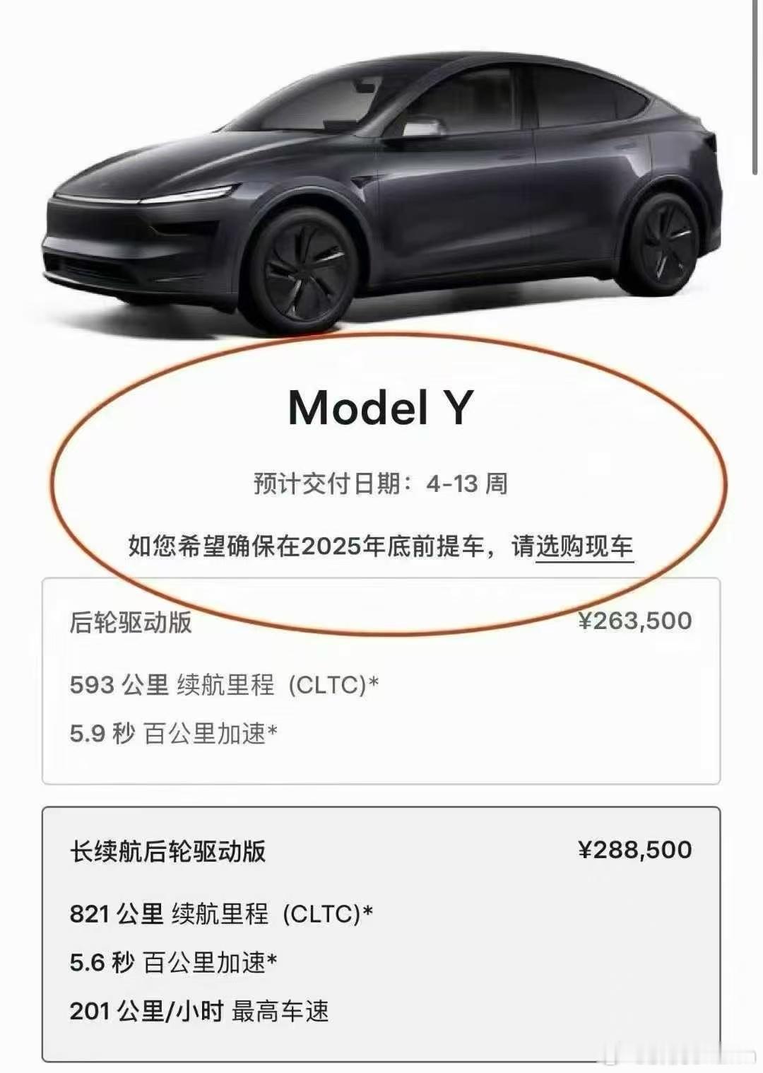 特斯拉官网提醒:如您希望确保在2025年底前提车,请选购现车。看来今年Model