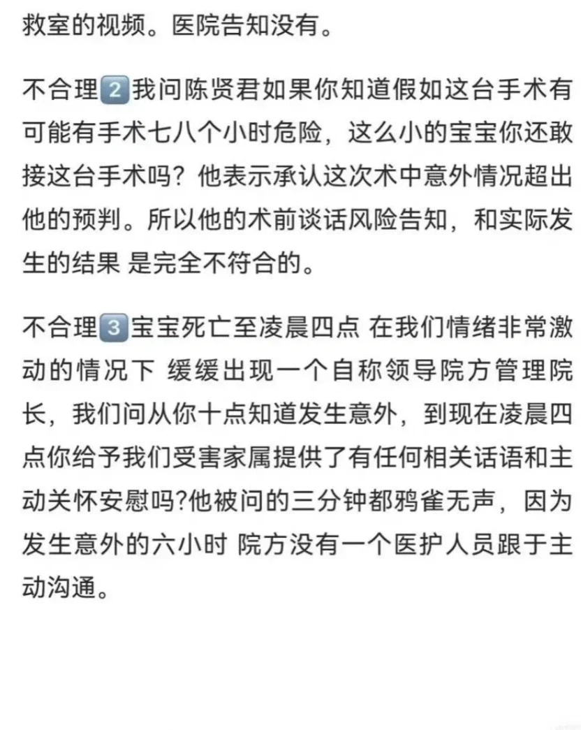 洛熙才5个多月啊,连抬头都还不稳,怎么就成了手术台上“超出预判”的牺牲品?我们不求赔偿,就想问清楚:术前评估是否严谨?术中风险为何隐瞒?抢救时为何不通知家