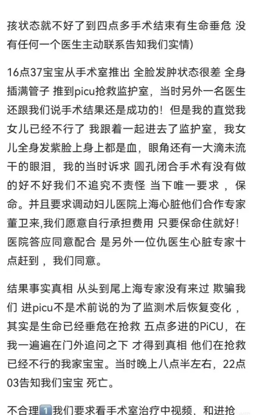 孩子从5点进PICU抢救到凌晨4点离世,6个小时里没有任何医护主动找家属沟通;