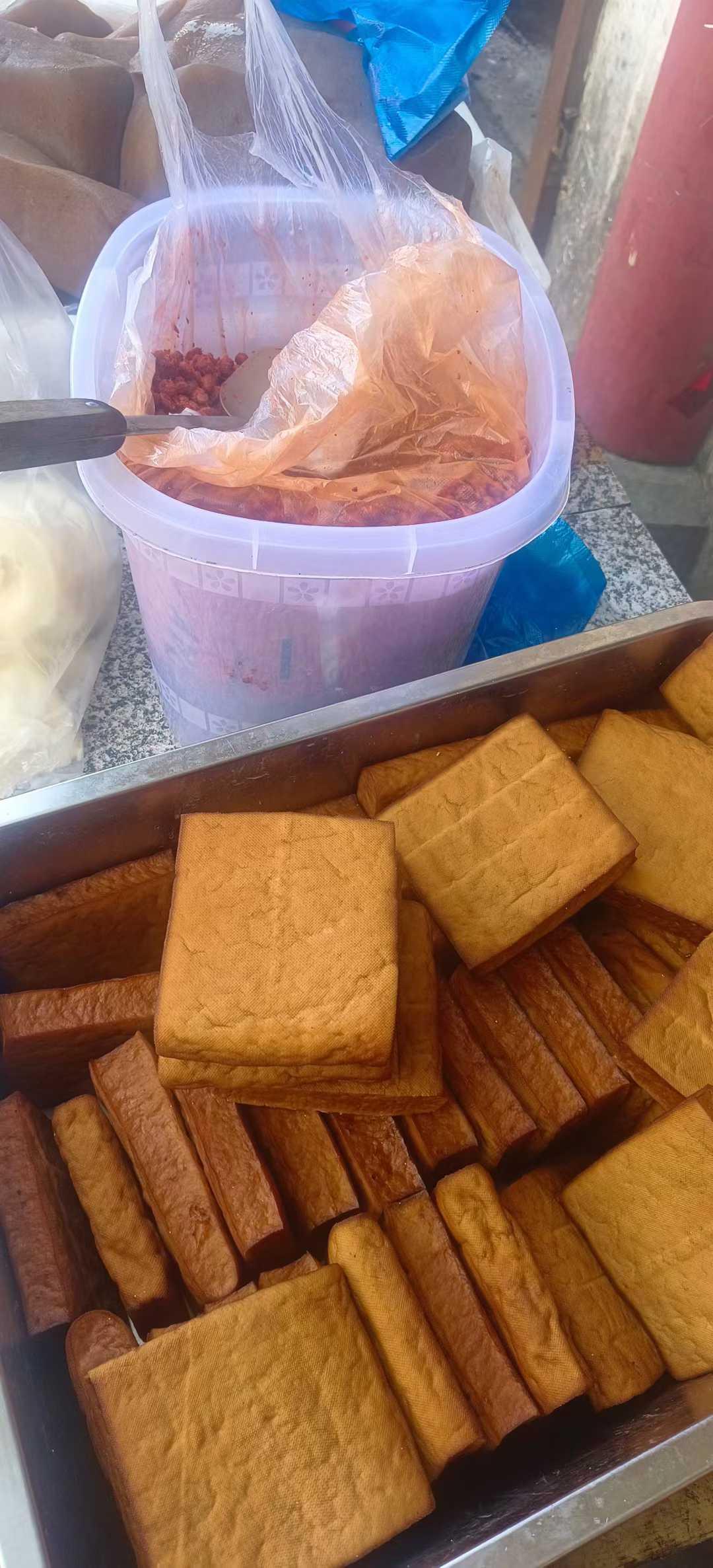 8点半,人们渐渐多了起来,预示着冬日的大集开场了。今年拐枣涩的呀,豆腐干整了炒腊