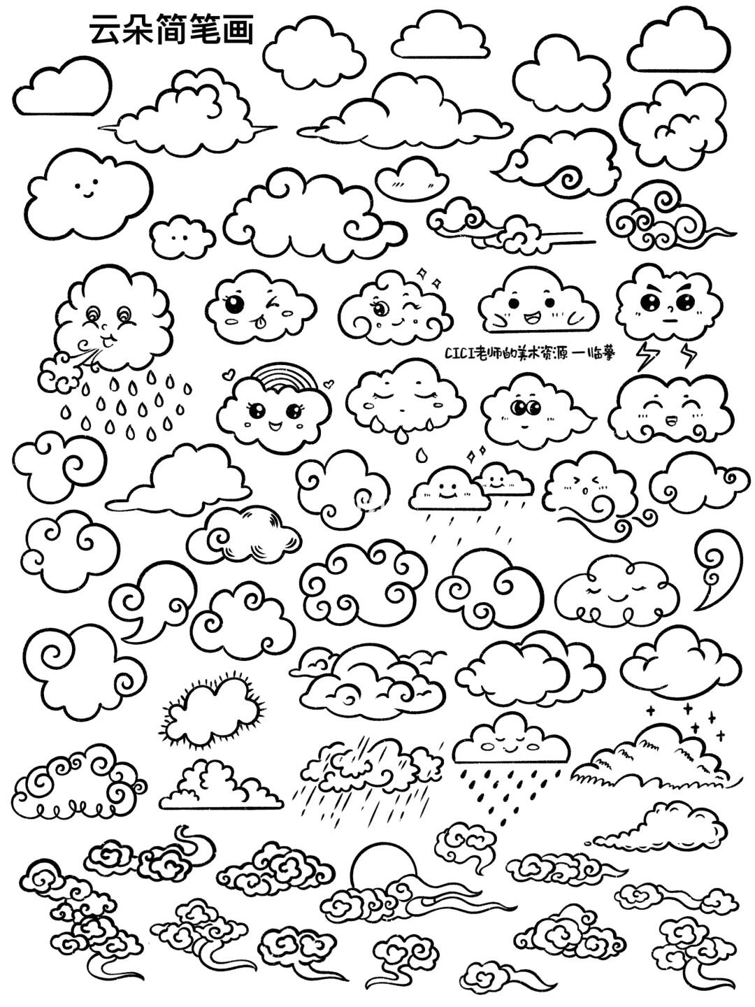 📚适用于主题画、手抄报、黑板报、贺卡、手账本上,及与天气🌞🌛✨ ☁️及天空主题相关的美术课程: