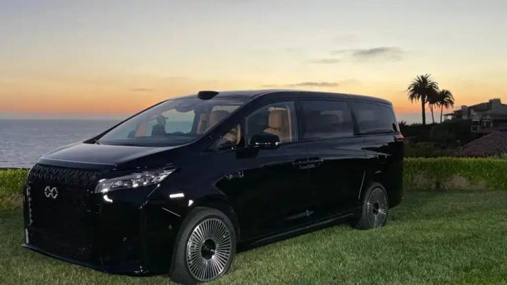 既然猜到了他的“模版”是谁,那么多余的外观赘述也就没必要了。从官图可以得知,整车的尺寸较大,轴距很长,不出意外的话,这台车的轴距接近3米3。侧面配备电动侧滑门,搭配多幅式轮圈以及悬浮式车顶设计,气场简约大方。车尾的设计和高山9如出一辙,贯穿式LED尾灯如天际线一般平行展开,拉伸了尾部的视觉宽度,灯组下方两侧保留类似“流苏”样式的竖状LED尾灯。说实话,高山以这样的形式进入美国市场,属实令人有点意外。