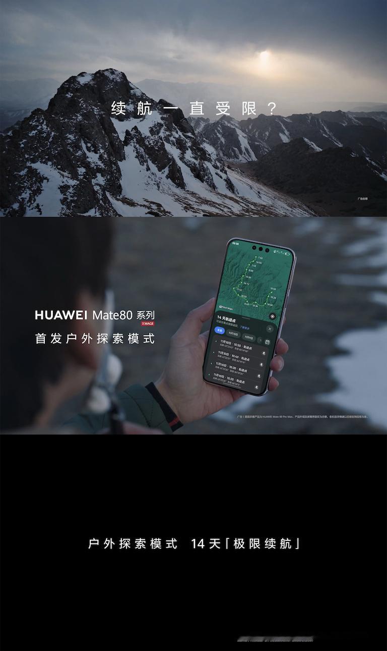 聊数码这么多年,最直观的感受就是手机电池技术一直在“追着需求跑”——从早期2000mAh勉强撑半天,到后来5000mAh+成旗舰标配,再到百瓦快充把充电时间压到十几分钟,日常续航焦虑确实少了很多。但有个痛点始终没解决:户外场景。爬山、露营、在野外充电宝沉得像块砖,找插座更是难如登天,手机电量掉得比肉眼看风景还快,这才是真・续航刚需。看华为今天的预热视频,这次Mate 80系列怕是真要戳中这个痛点了。要知道华为之前在电池技术上就没少搞突破,从电池材料优化到功耗控制,每次都能给点惊喜。还有诸多户外实用功能都集成在手机上还能极限续航14天!?那户外场景绝对能甩开友商一截。这才是高端旗舰该有的创新方向!