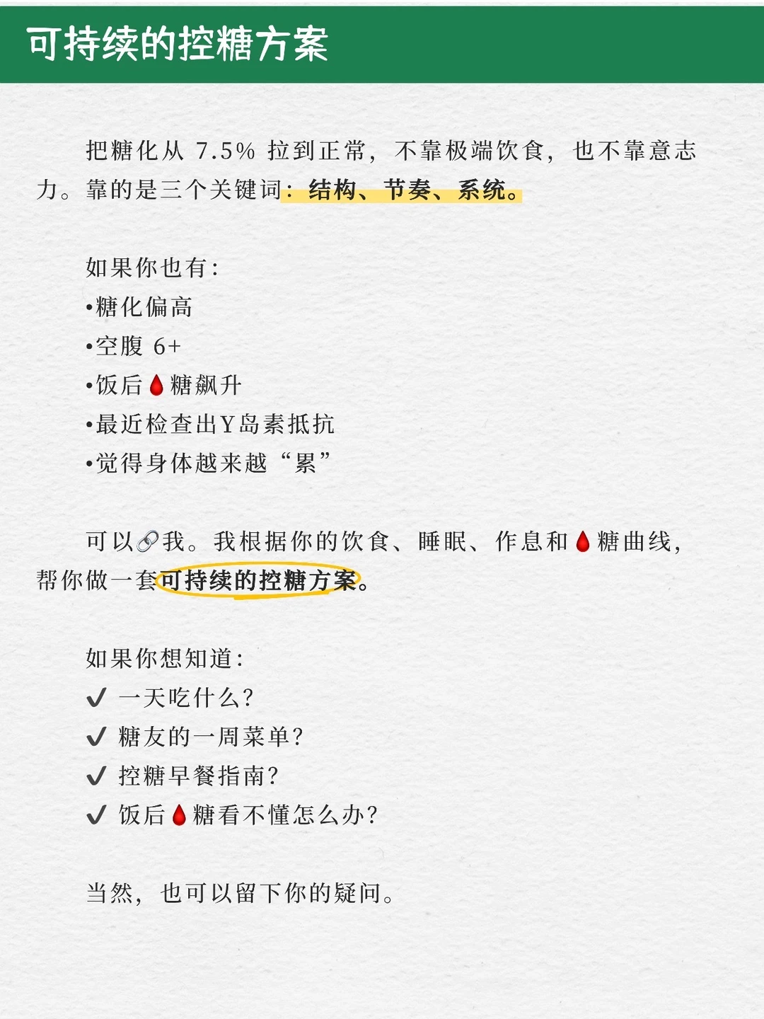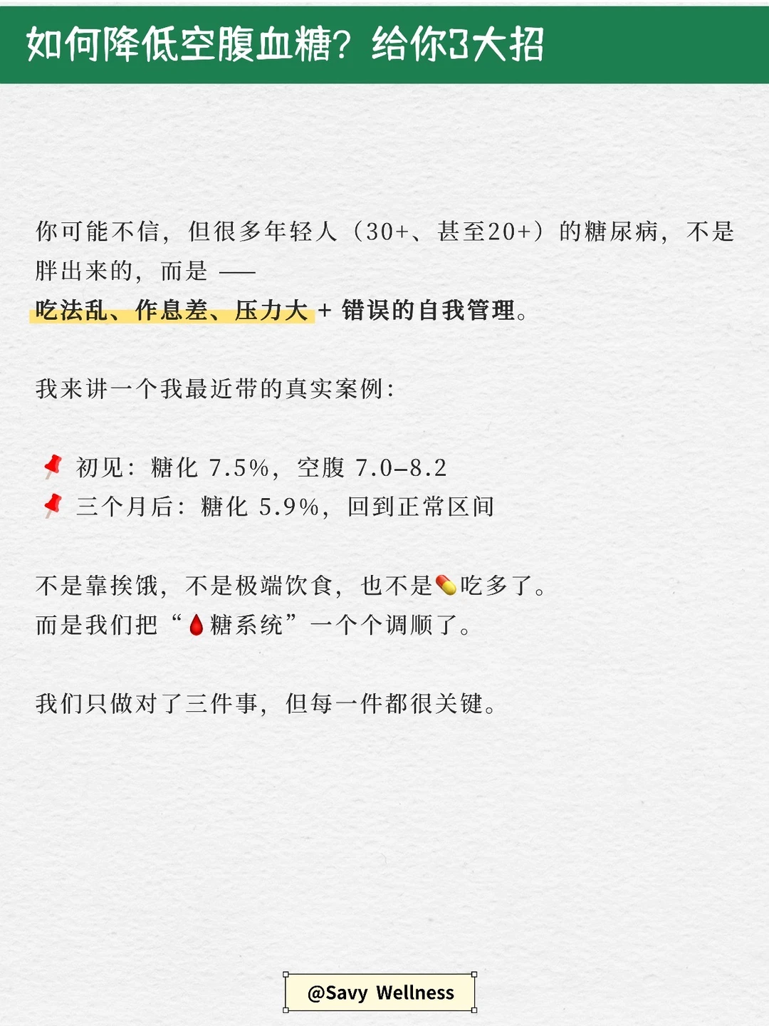 3个月,糖化7.5%到5.9%,我们做对了哪三件事?