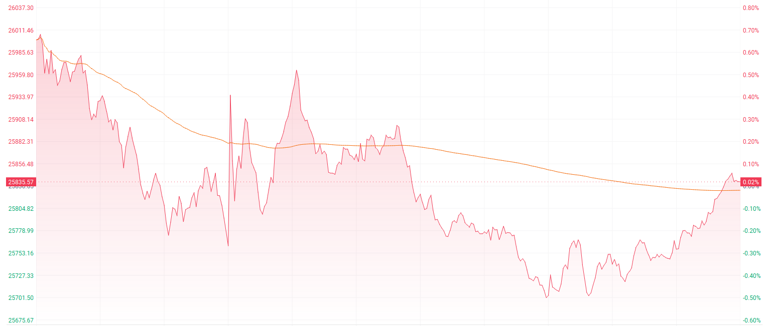 财联社11月20日讯(编辑胡家荣)港股三大指数延续震荡。截至收盘,恒生指数涨0.02%,报25835.57点;科技指数跌0.58%,报5574.59点;国企指数跌0.08%,报9143.34点。