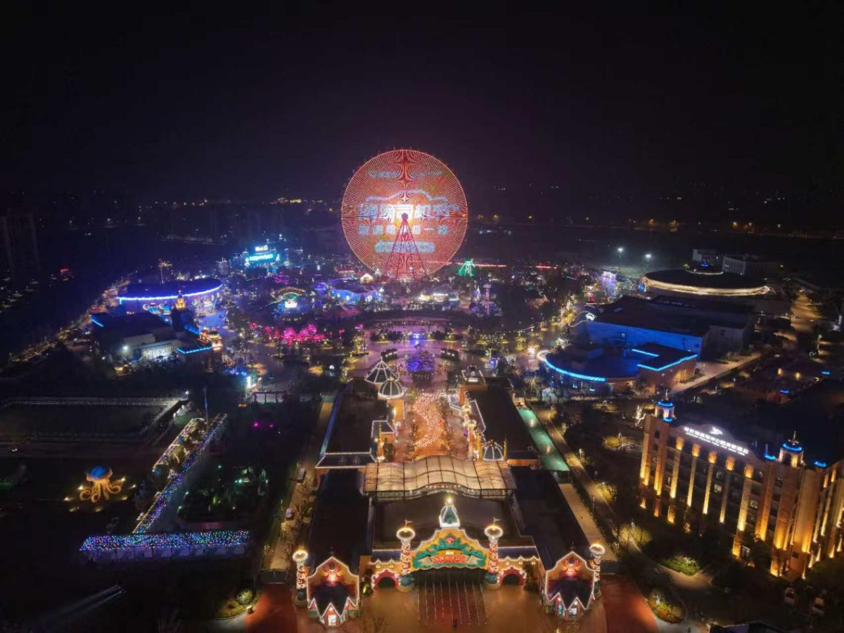 图为:郑州海昌海洋公园亮灯祝司机节日快乐