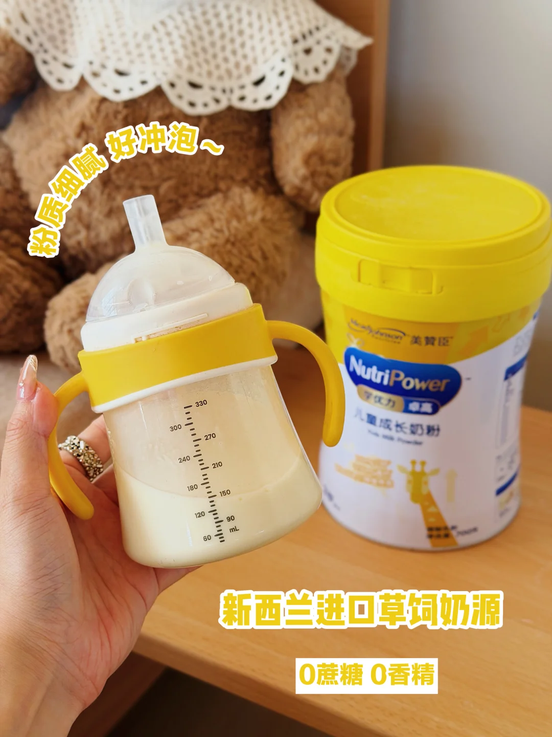 而且它不光顾着成长营养,还加了DHA和27种关键营养素,娃日常需要的营养一次补全,不用再额外吃一堆补剂。双益生元组合还能护着娃的小肚肚,之前喝别的奶粉偶尔会便秘,换这款后每天排便都超规律✌️