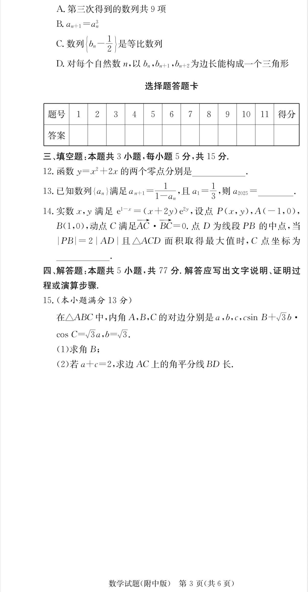 湖南四大名校之湖南师大附中2026届高三第三次月考数学试题,该校今年高...