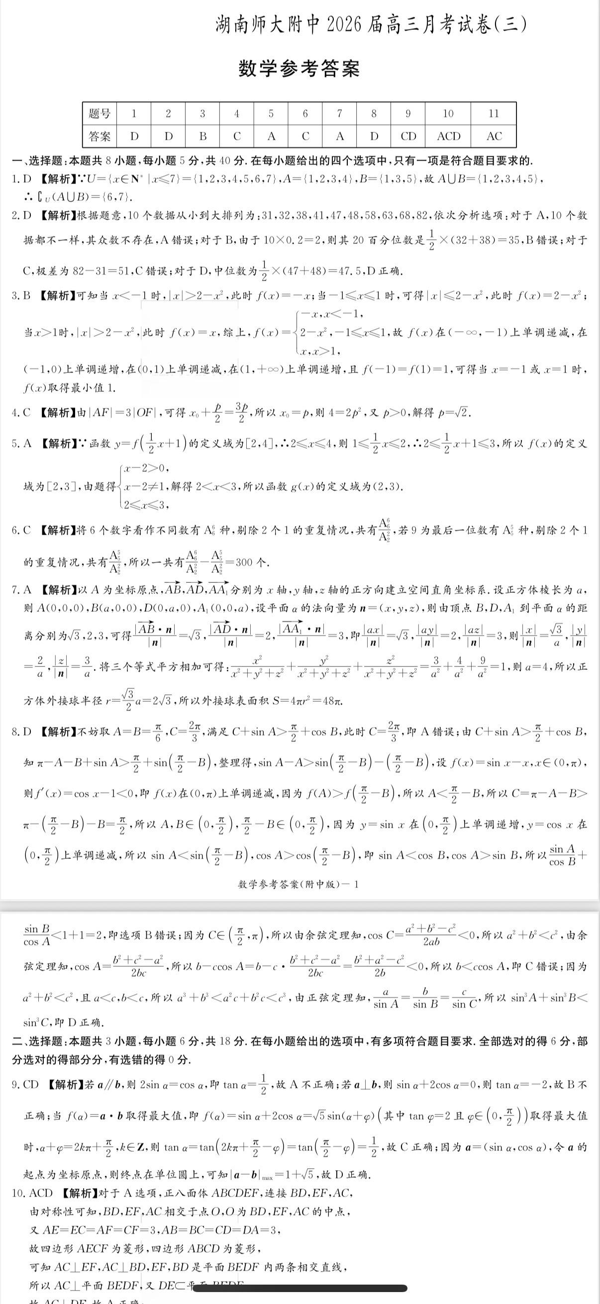 湖南四大名校之湖南师大附中2026届高三第三次月考数学试题,该校今年高考清北65人,仅次于长郡中学,73.84%的学生600分以上,位列四大名校之首!