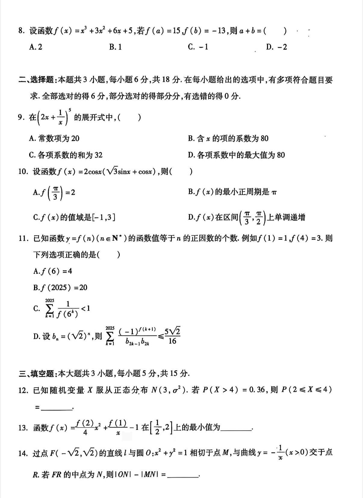 杭州市2026届高三一模数学试题及答案,概率新定义压轴,这份试卷的创新与以往杭州保守的风格差别挺大!